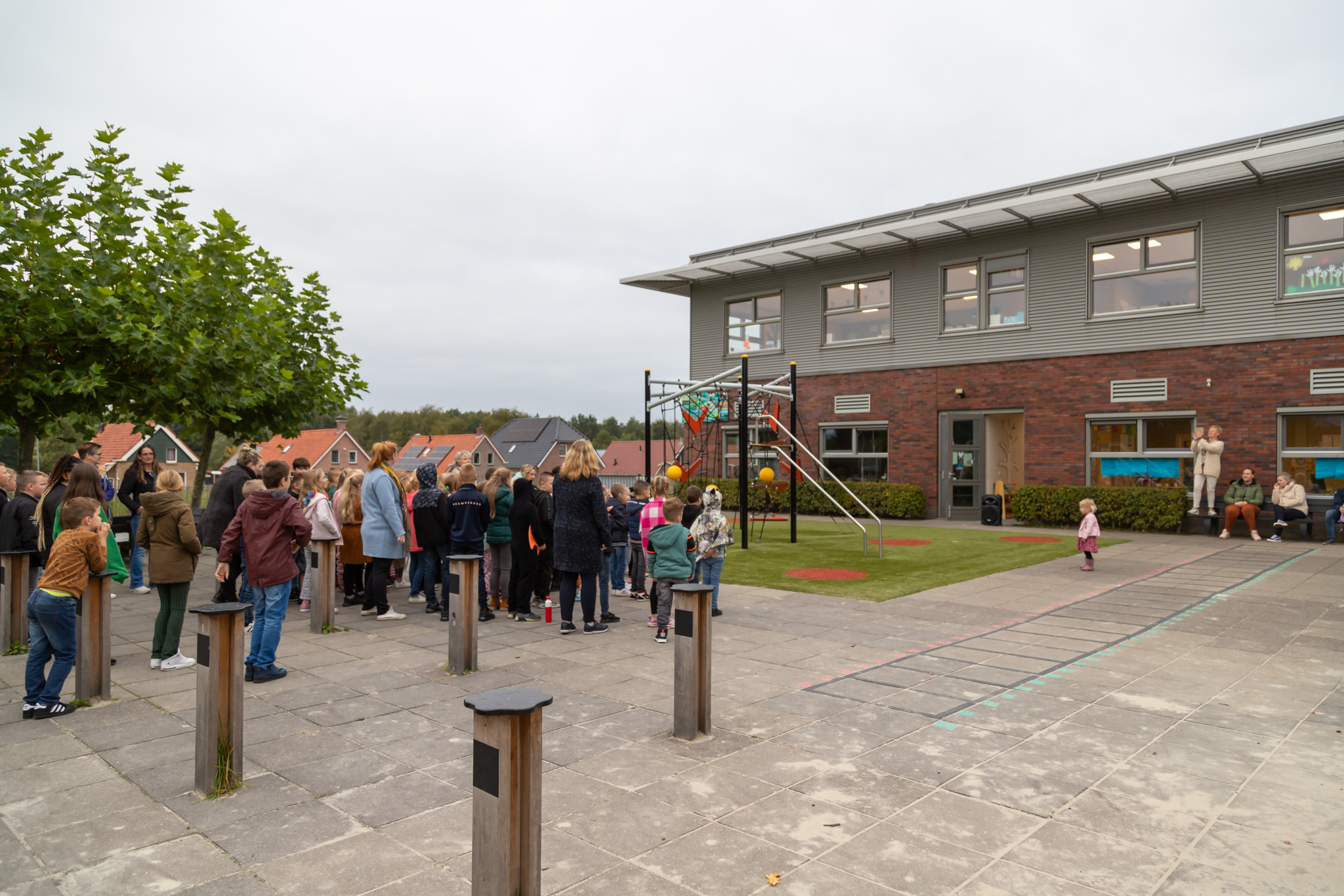 Finsterwolde – Woensdag 5 oktober was er op de OBS “de Bouwsteen” een feestelijke opening van de Kinderboekenweek. Op het schoolplein werd eerst samen gezongen en de kinderen mochten verkleed naar school komen. Het thema van de Kinderboekenweek is “Gi-ga groen!” en er waren dan ook kinderen prachtig verkleed en geschminkt als allerlei dieren zoals lieveheersbeestjes of bijen.