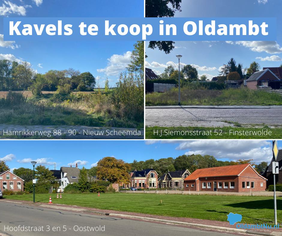 Oldambt – Te koop; vrije kavels! De gemeente Oldambt geeft een aantal kavels uit in enkele dorpskernen. Bestemd voor woningbouw. Vrijstaand wonen, met – in het geval van Nieuw Scheemda – vrij uitzicht. Overige locaties zijn in Oostwold (2) en Finsterwolde (1).