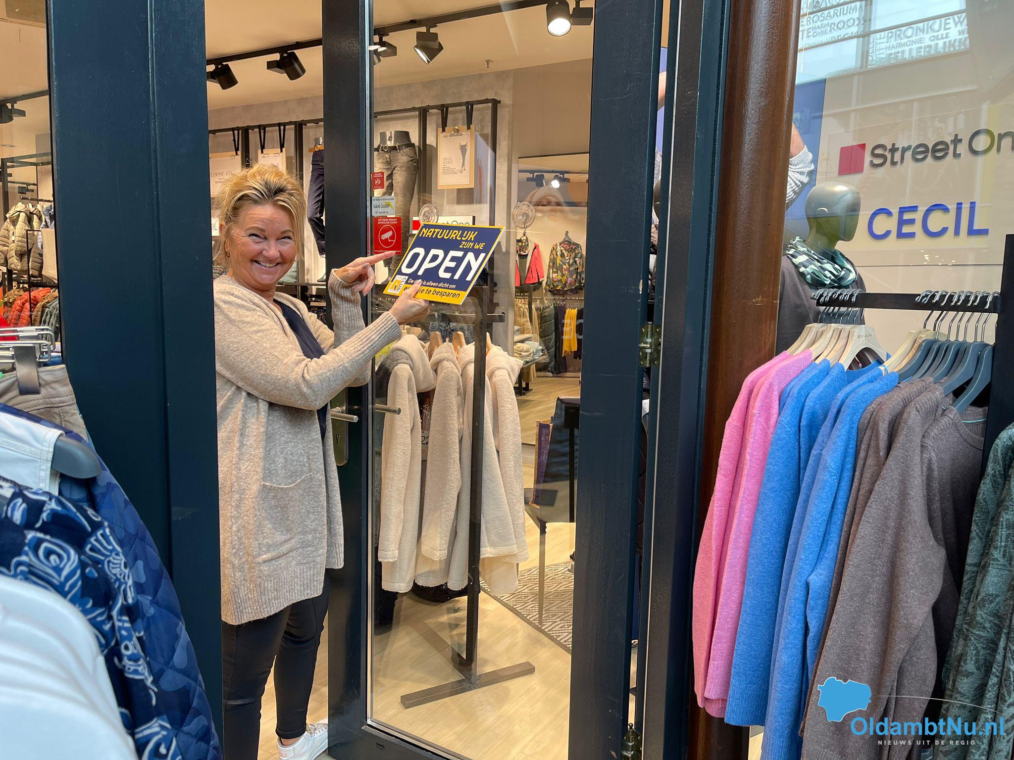 Om de consument te laten weten dat de winkeliers geopend zijn is bedacht om een mooi bordje te ontwerpen. Maandag overhandigde voorzitter van City Club Winschoten Pascal Meinders het eerste bordje aan Jet Raangs van Favors.