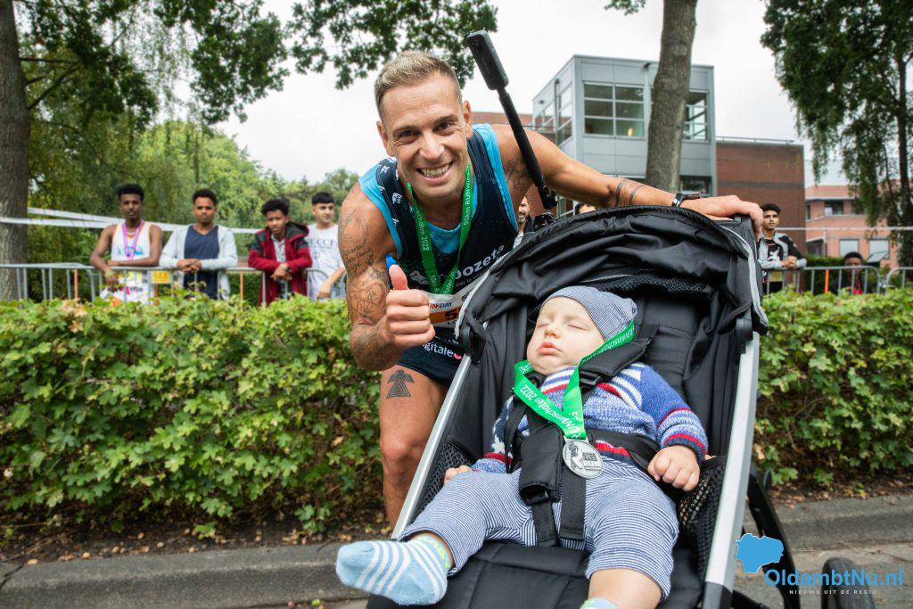 Kleine Raimondo kreeg weinig mee van de bijzondere recordpoging van zijn vader. Terwijl vader Lorenzo werd toegejuicht door het publiek toen hij over de finish kwam, sliep Raimondo rustig door. Maar natuurlijk verdiende ook de jongste ‘deelnemer’ van de RUN een medaille, want zonder hem was het record nooit verbroken.