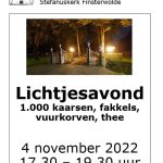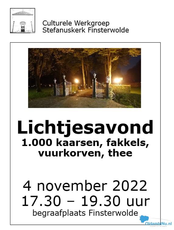 Finsterwolde – Op vrijdag 4 november zal het kerkhof in Finsterwolde worden verlicht door ruim 1.000 waxinelichtjes, 100 fakkels en door 2 grote gasbranders bij het toegangshek aan de Hoofdweg. Op deze avond denken we op een speciale manier extra aan hen die we moeten missen.