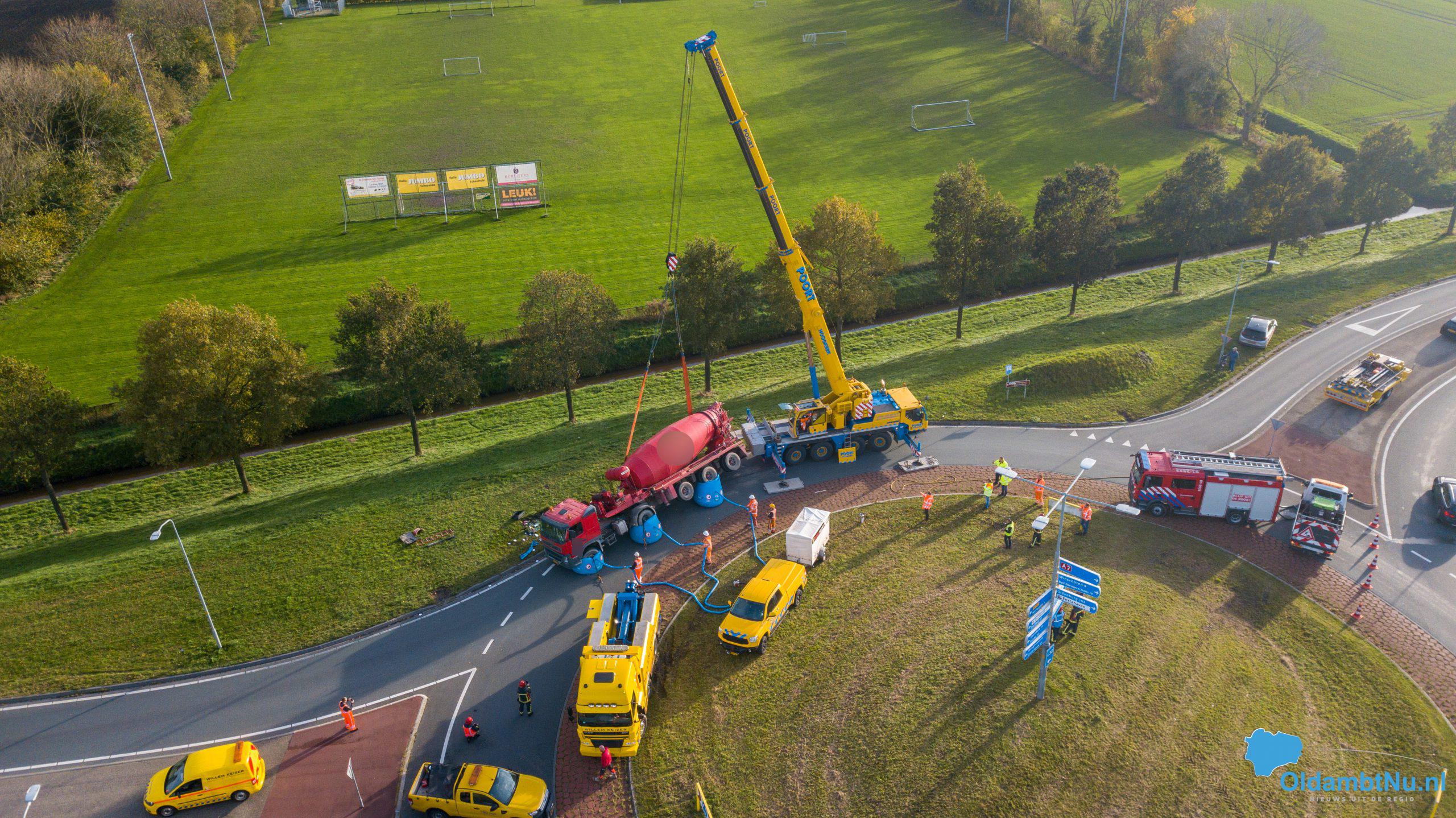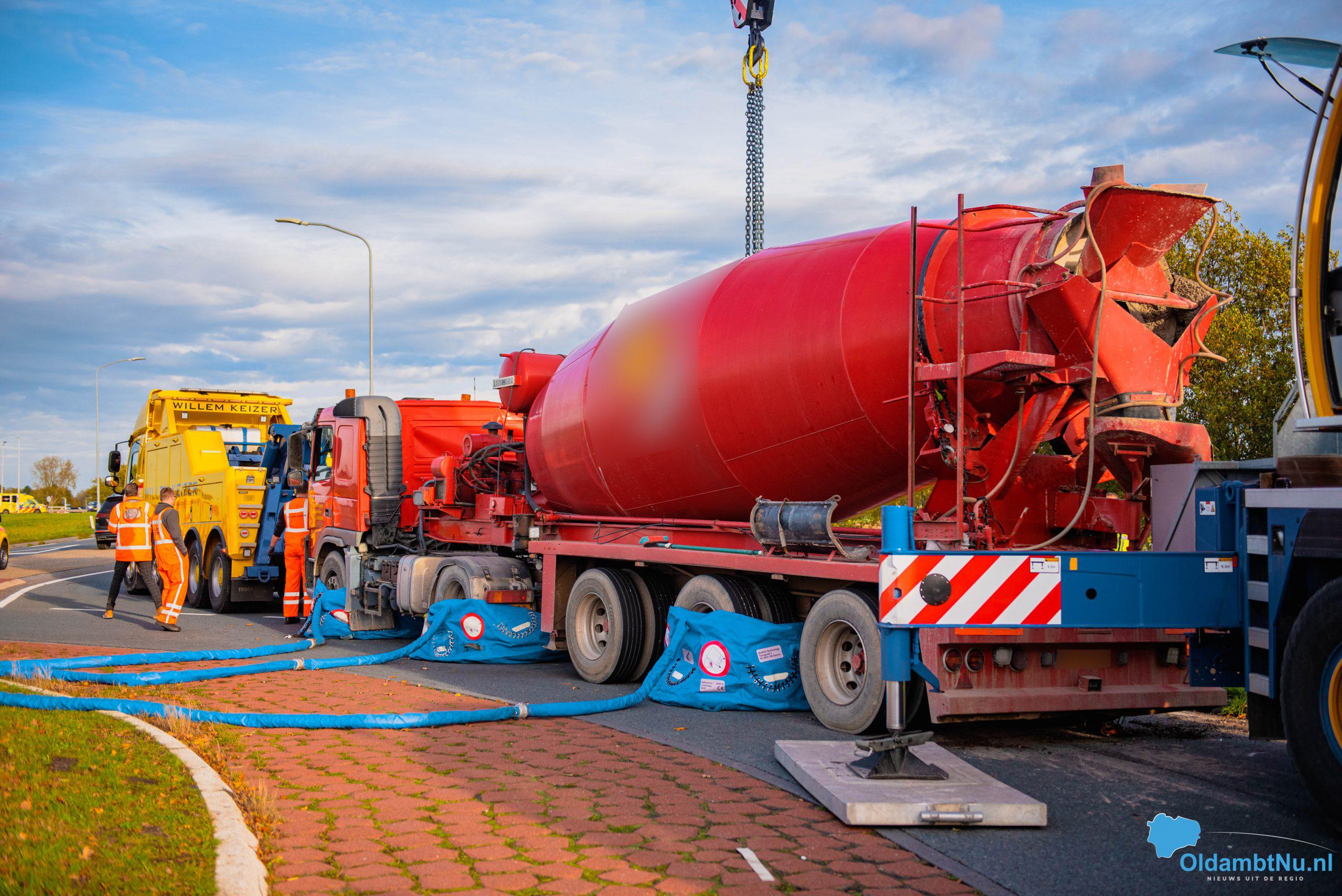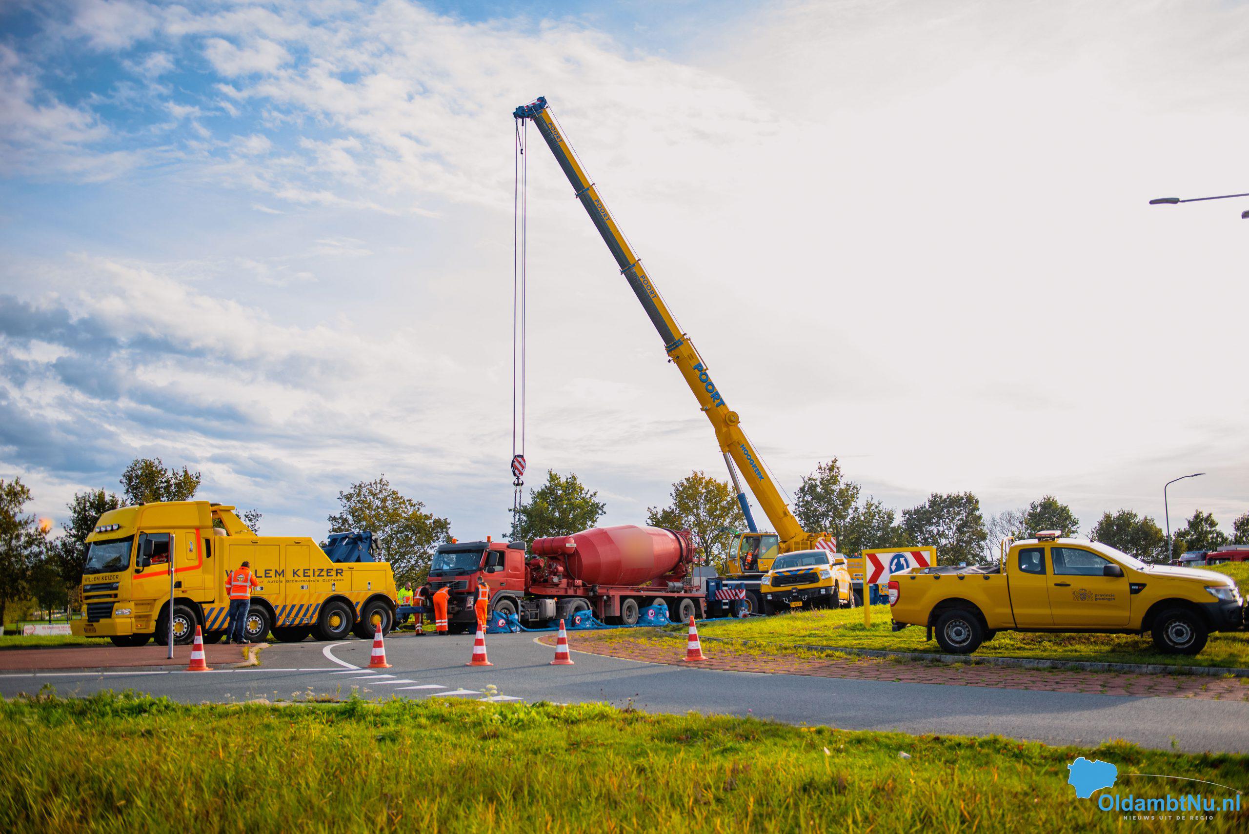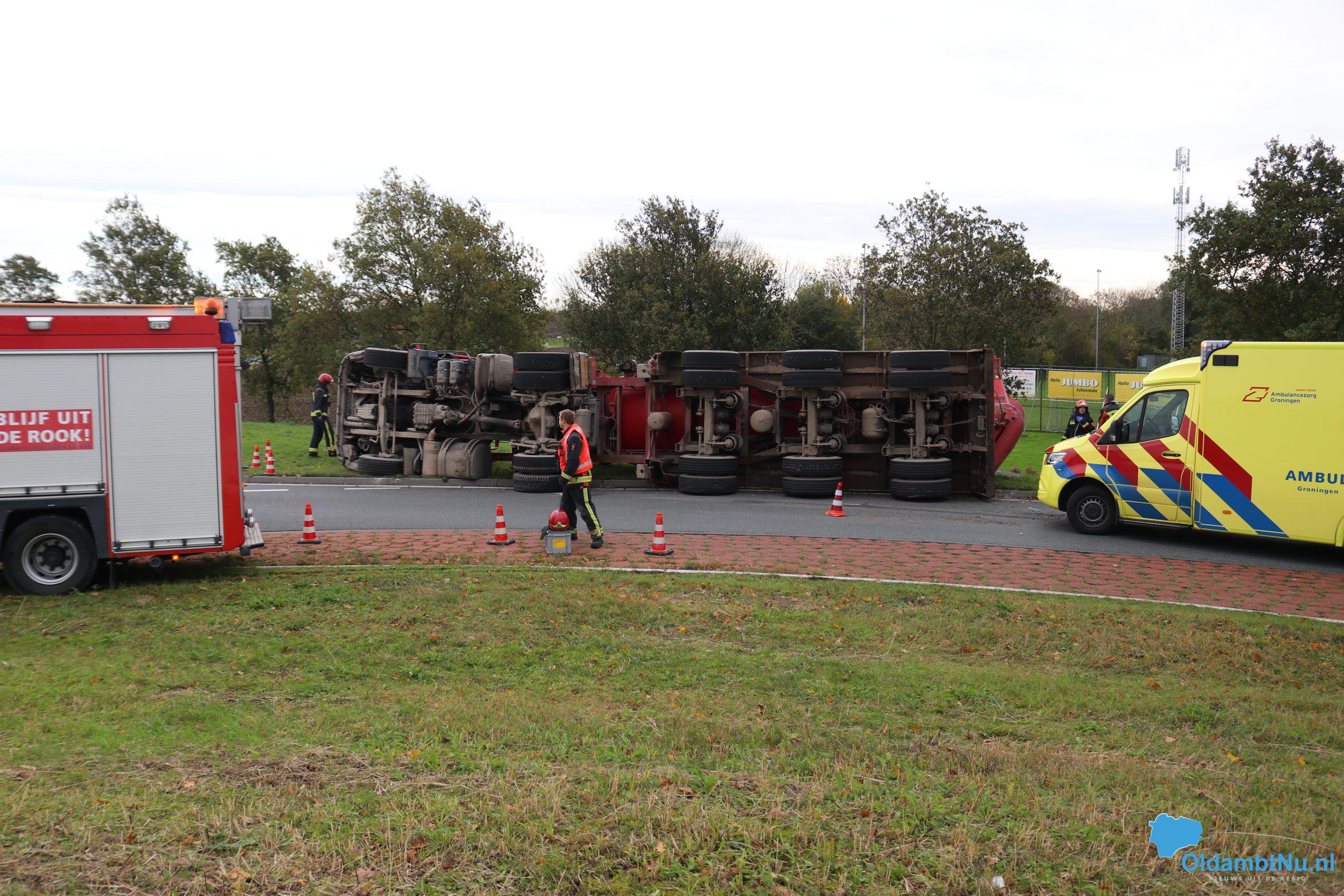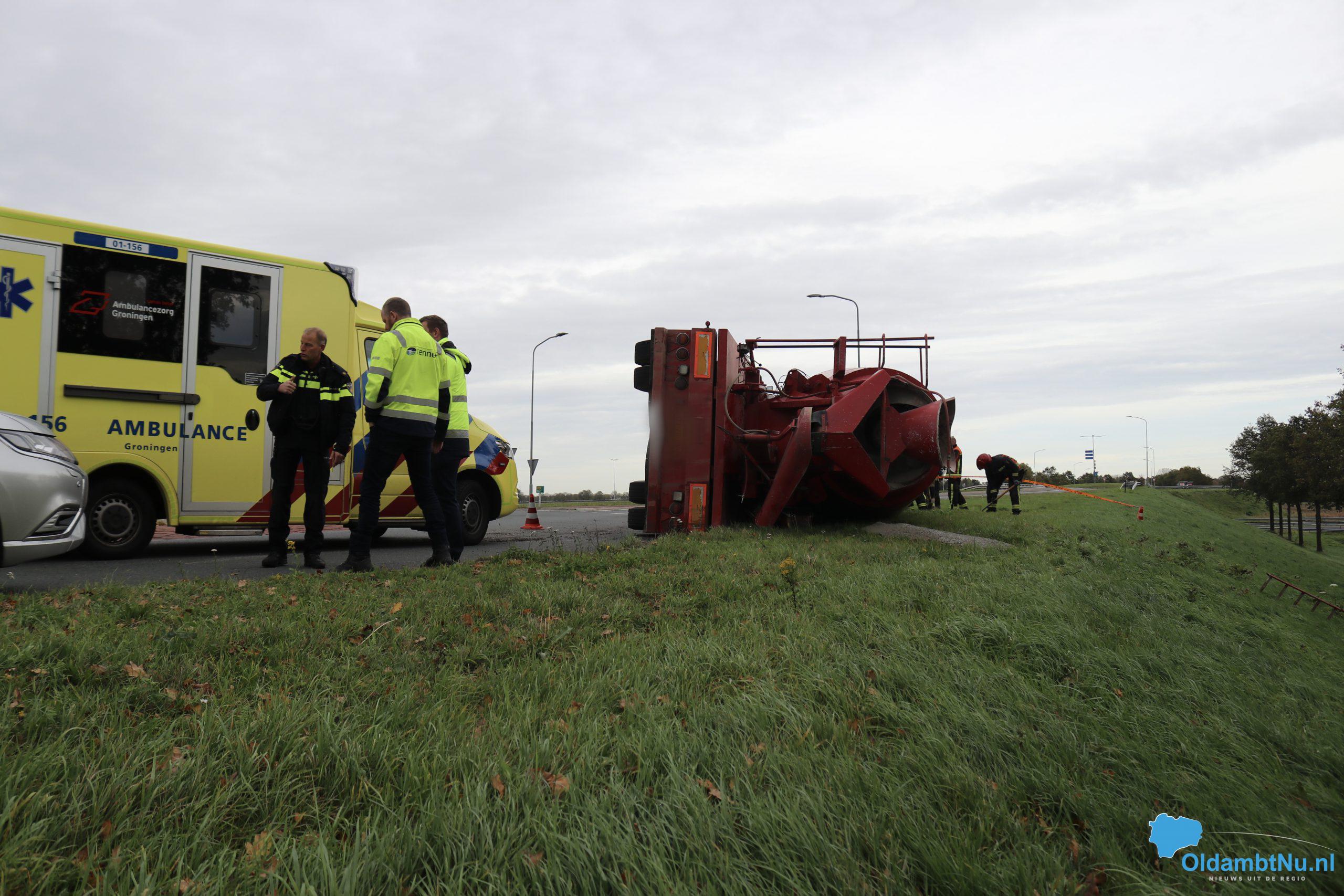 Scheemda – Een vrachtwagen geladen met cement is dinsdag aan het eind van de ochtend gekanteld. Dit gebeurde bij een eenzijdig ongeval op een rotonde van de Oude Rijksweg (N362) in Scheemda.