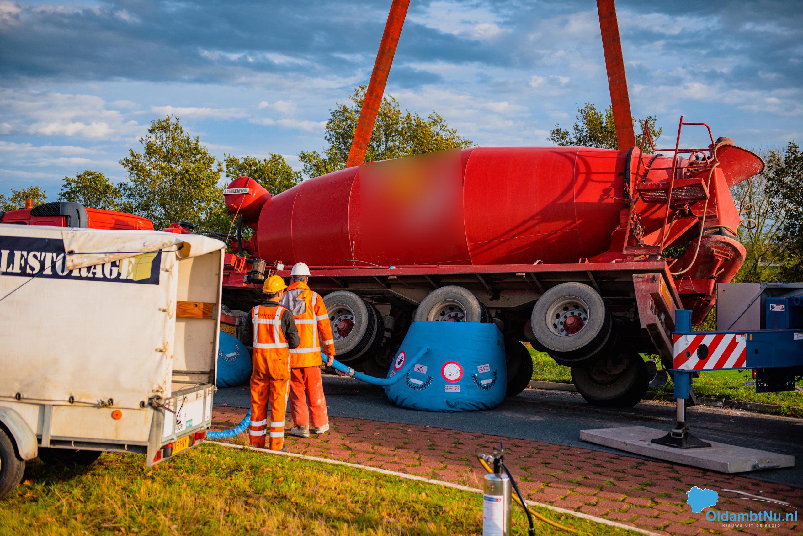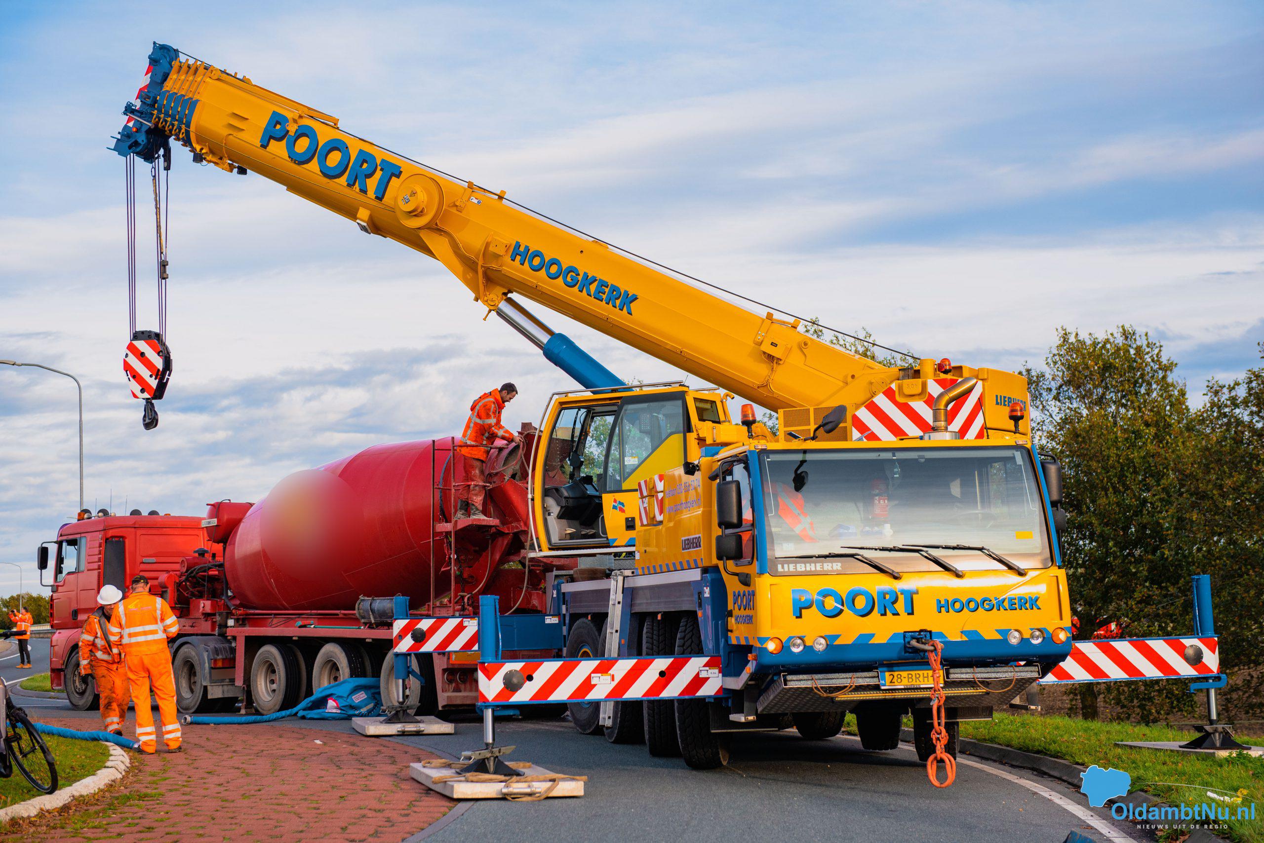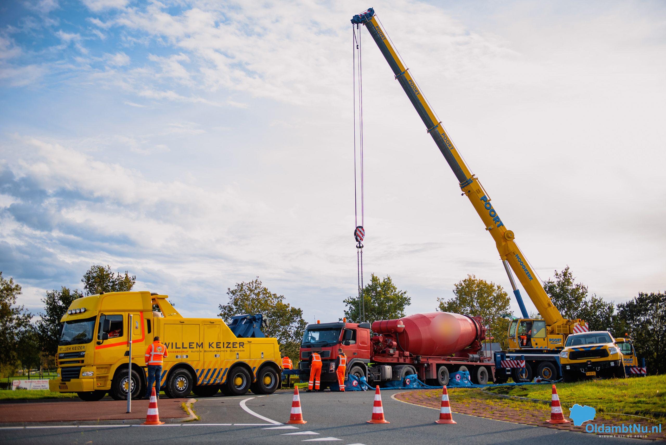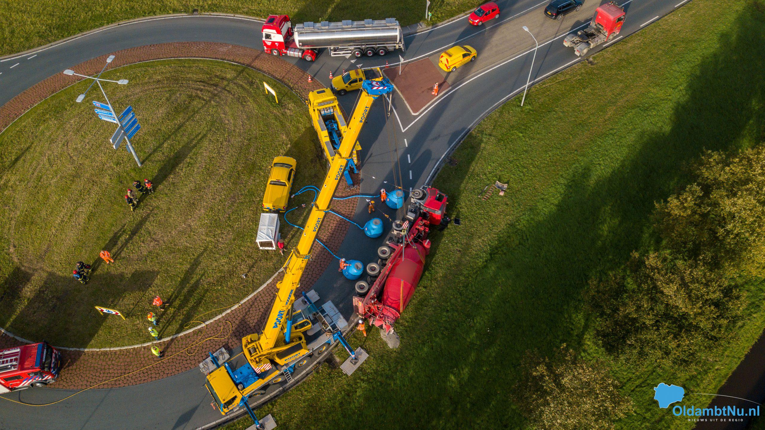 Scheemda – Een vrachtwagen geladen met cement is dinsdag aan het eind van de ochtend gekanteld. Dit gebeurde bij een eenzijdig ongeval op een rotonde van de Oude Rijksweg (N362) in Scheemda.
