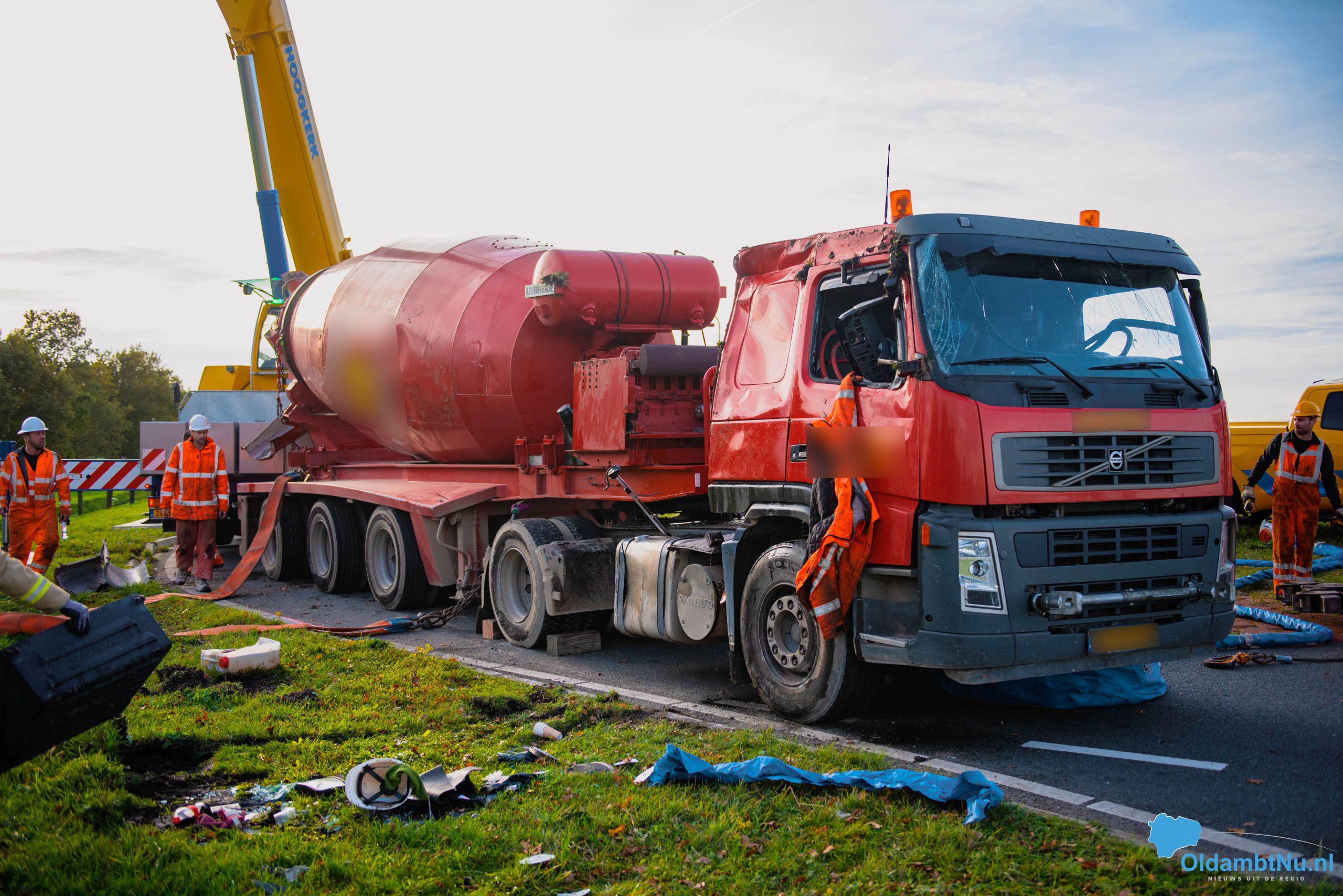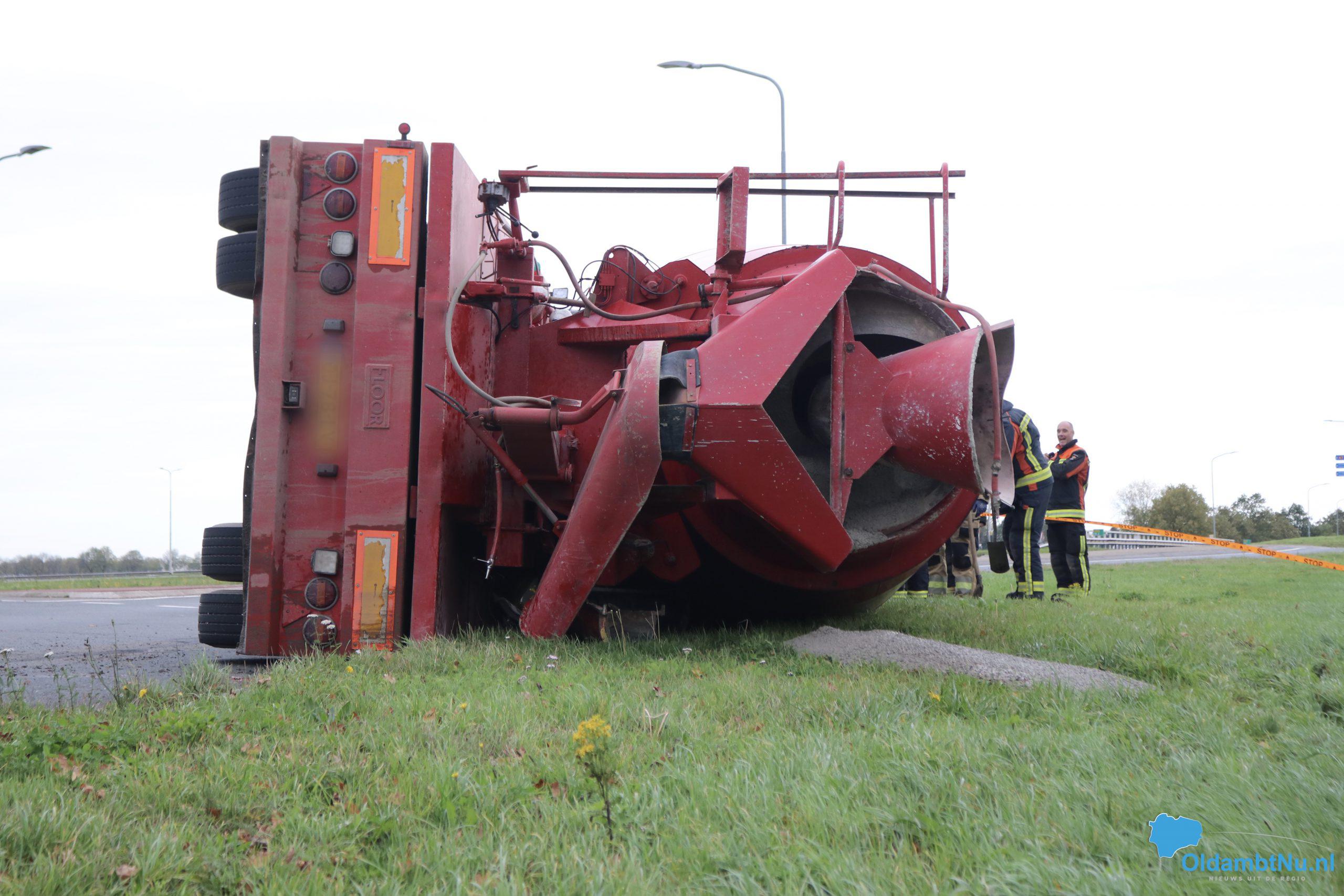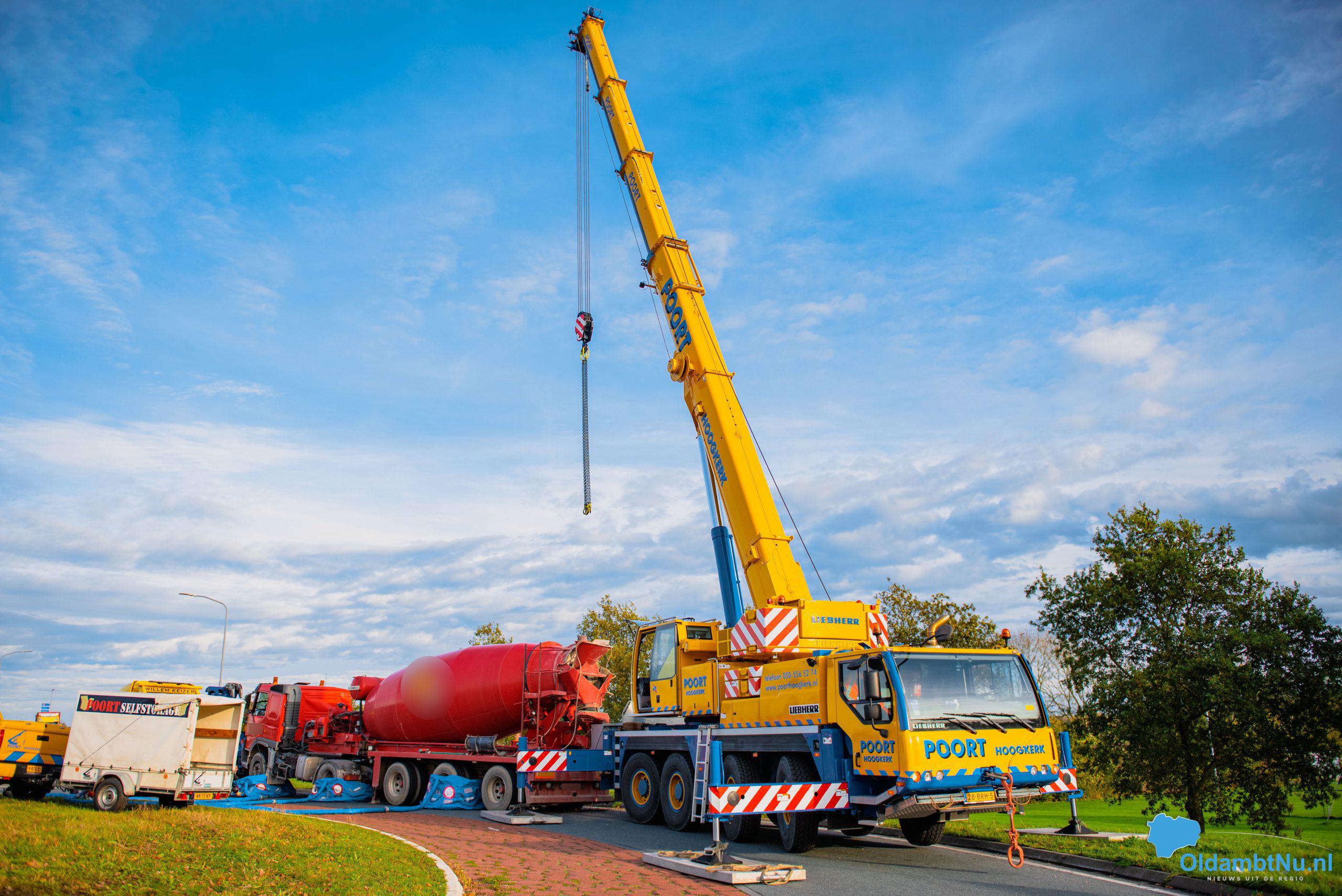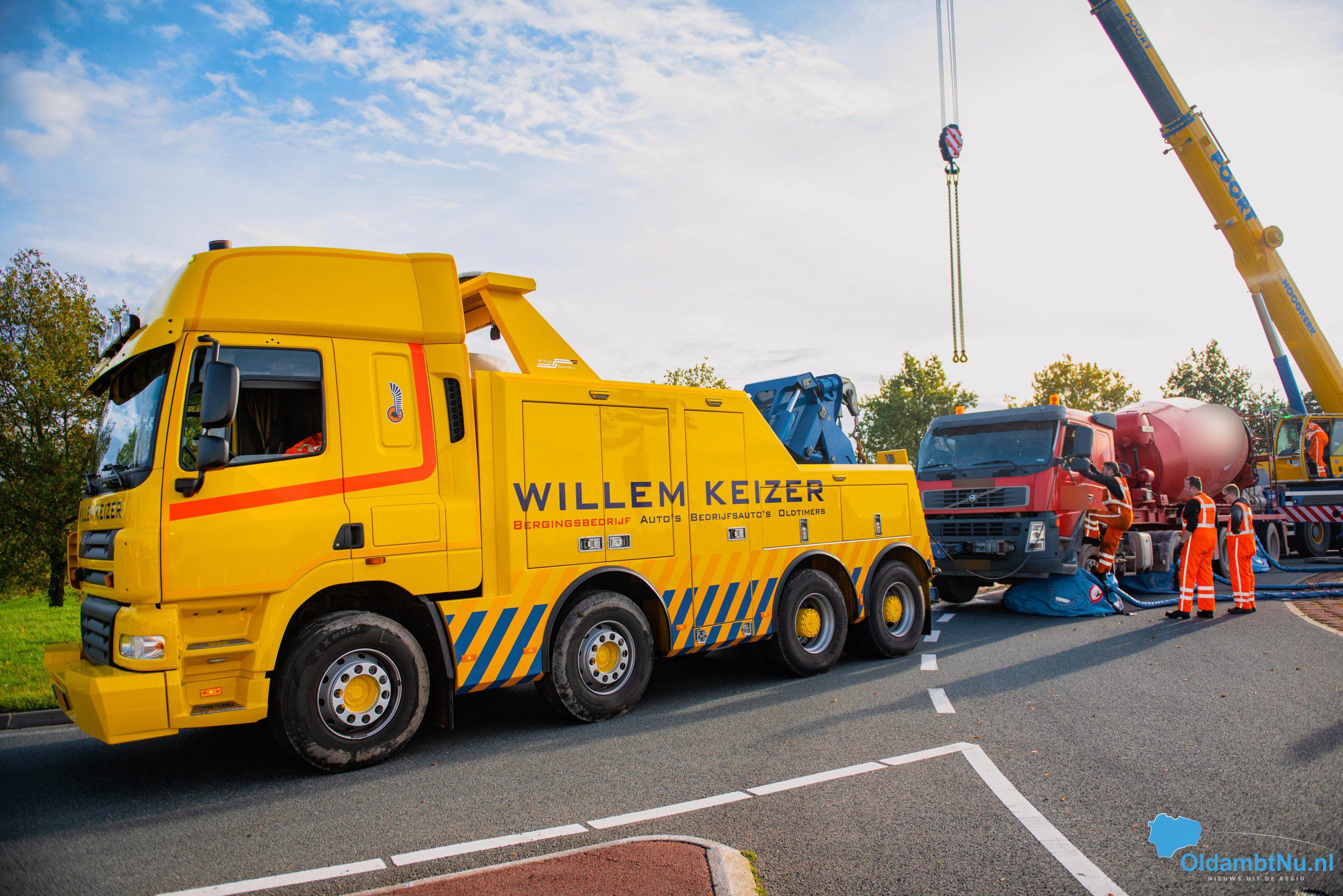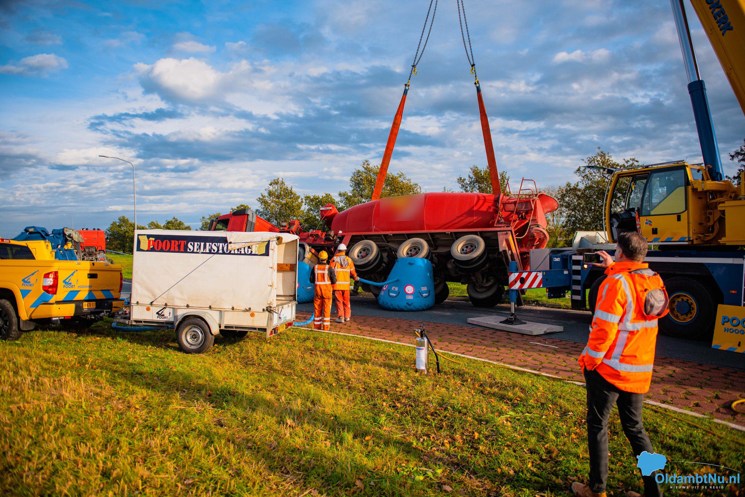 Scheemda – Een vrachtwagen geladen met cement is dinsdag aan het eind van de ochtend gekanteld. Dit gebeurde bij een eenzijdig ongeval op een rotonde van de Oude Rijksweg (N362) in Scheemda.