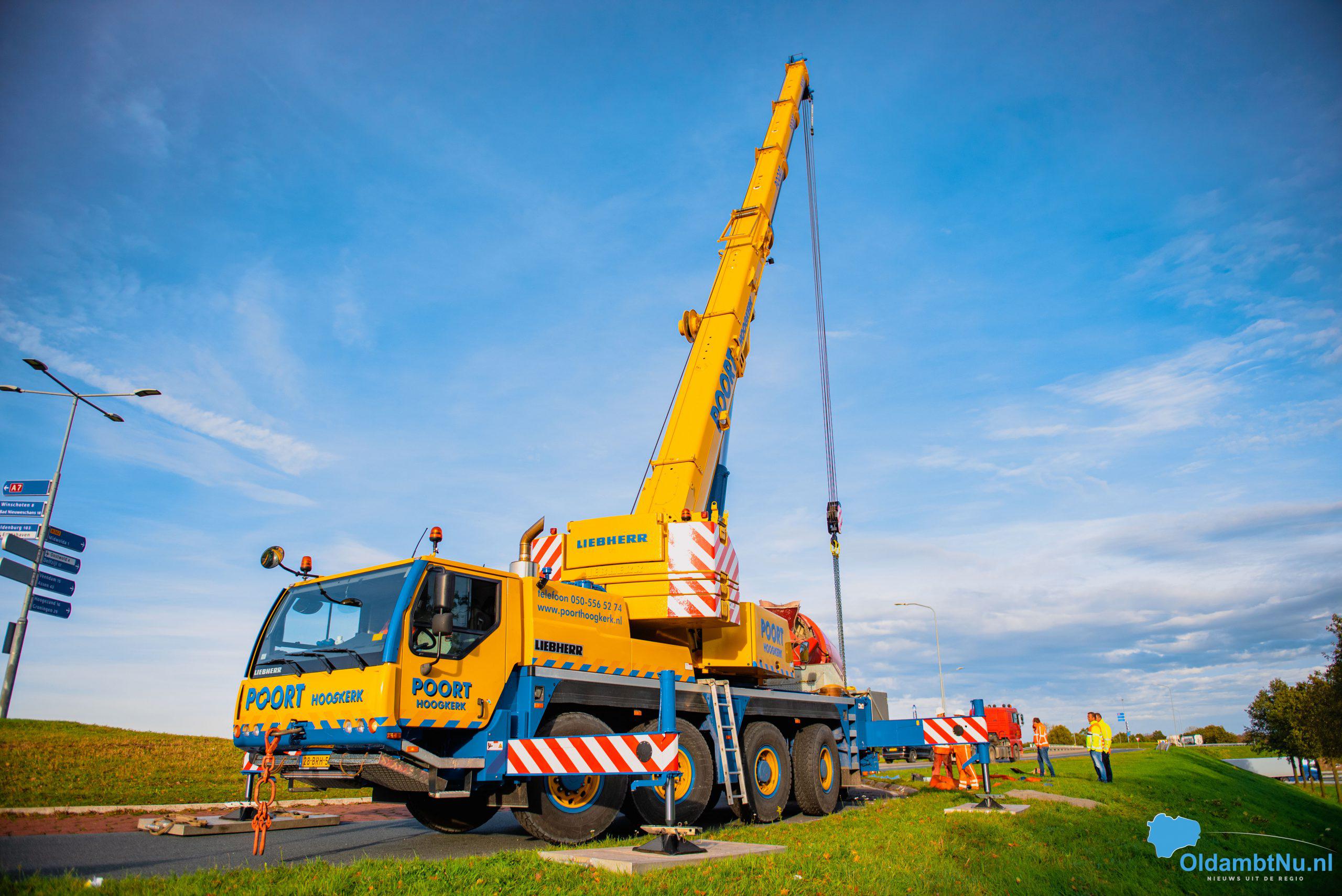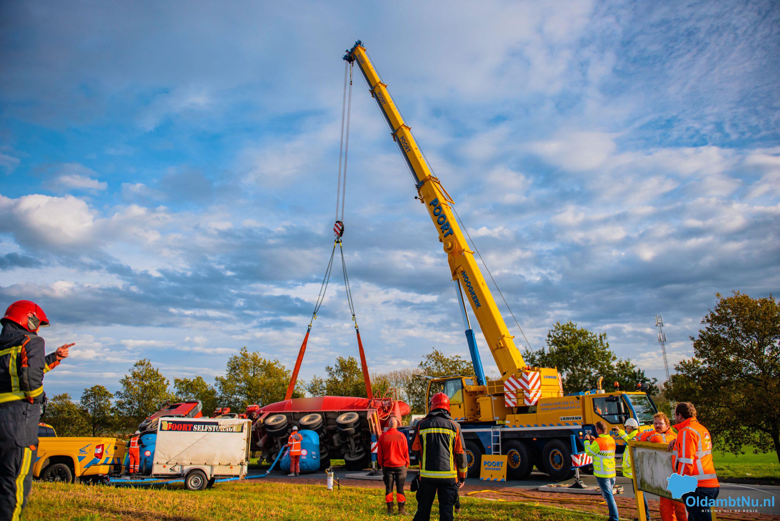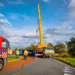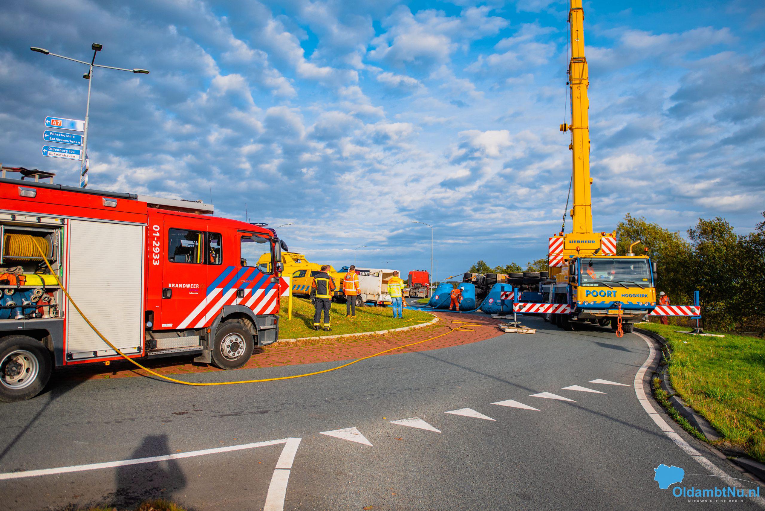 UPDATE: Vrachtwagen kantelt op rotonde in Scheemda