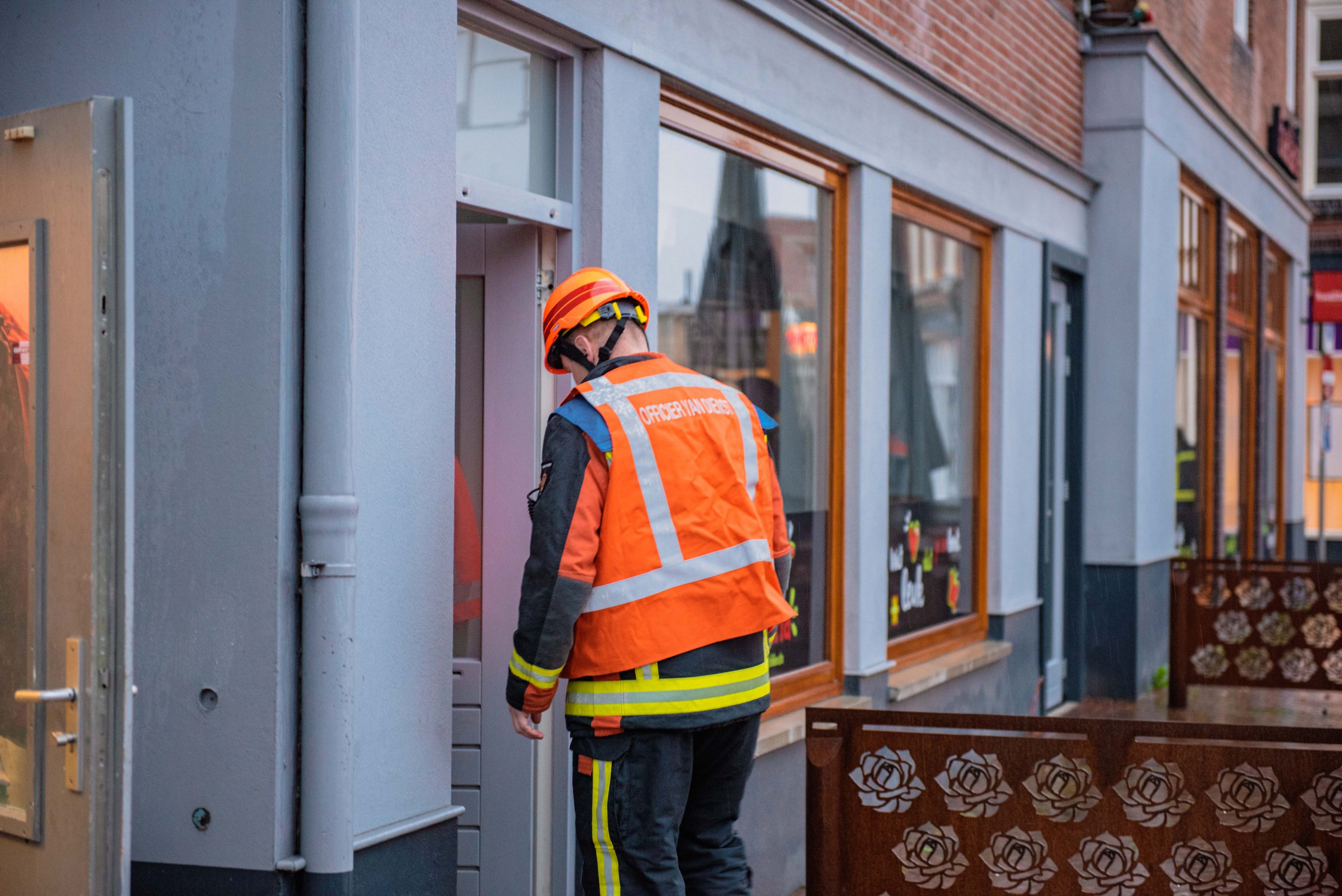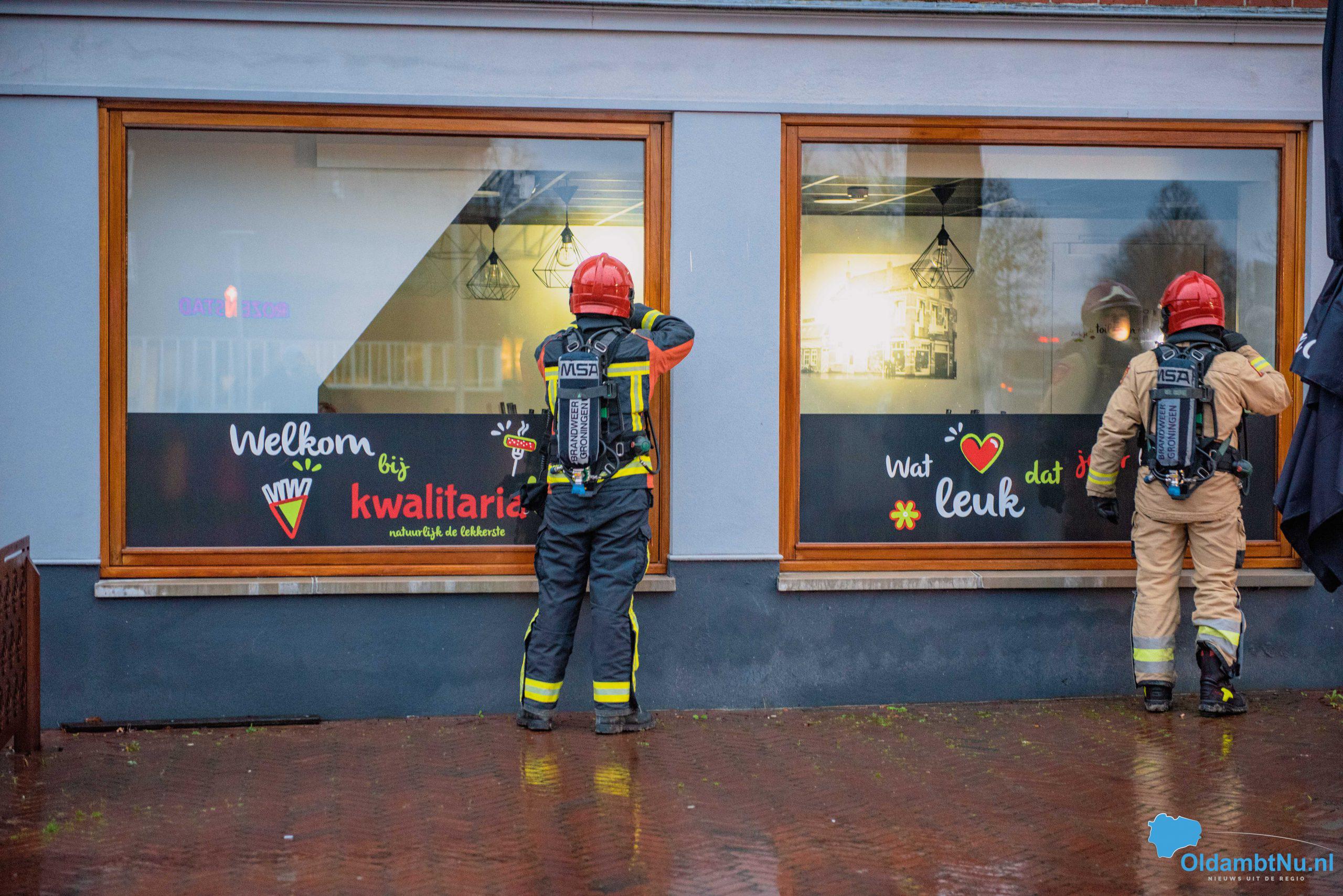 Ter plaatse was er een rookmelder geactiveerd in het pand van Kwalitaria en ook de stroom uit gevallen. Een bewoner van het bovenliggende pand moest tijdelijk buiten in de regen wachten tot de situatie was vrijgegeven door de brandweer.