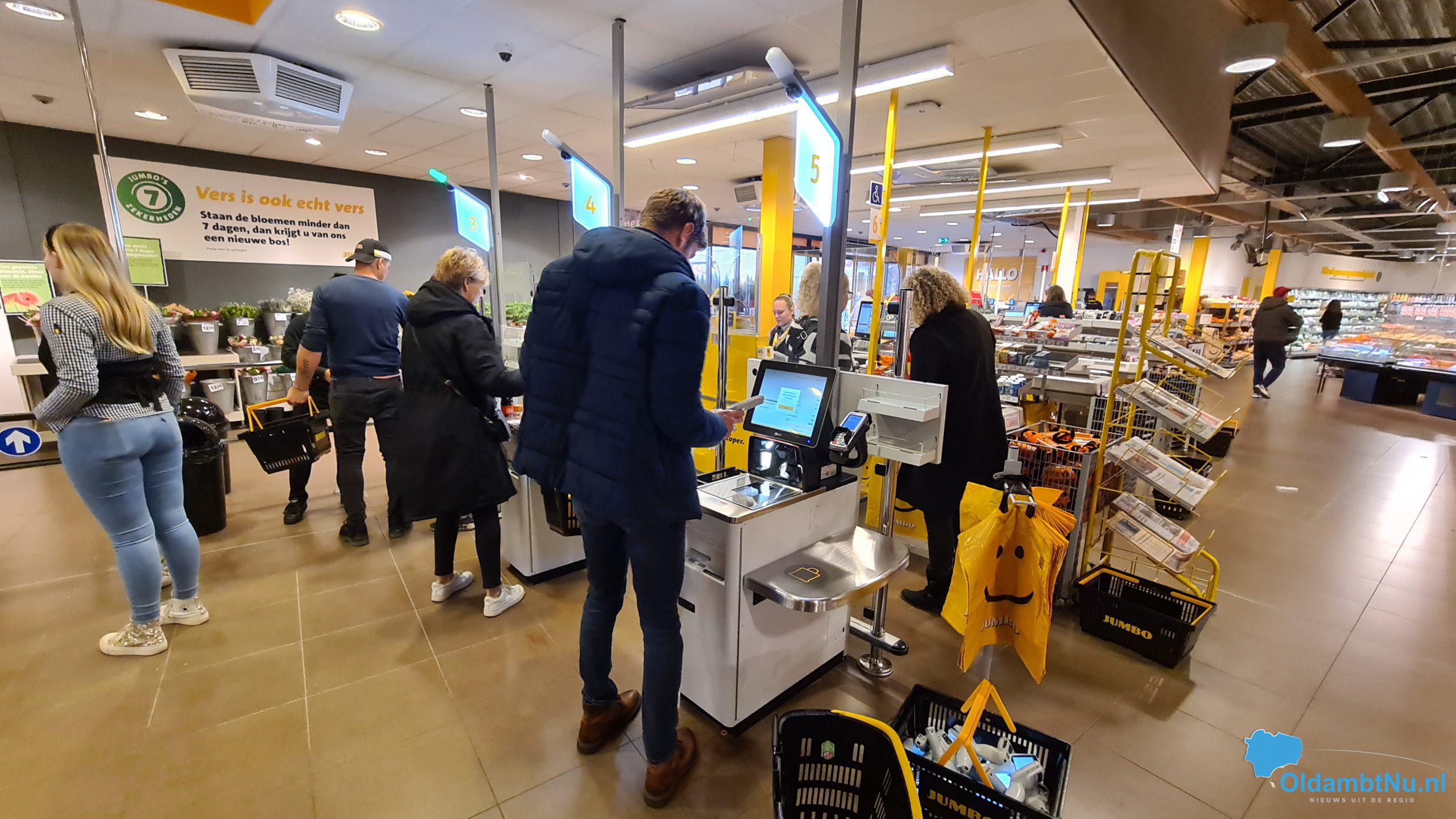 Winschoten – Per 1 januari gaat de statiegeldheffing in op blikjes frisdrank, bier etc. Jumbo Jan van der Weele is sinds deze week hier al helemaal op voorbereid. Met twee emballage inname apparaten in de entree van de supermarkt wordt het straks achter de schermen hard werken om alle flessen, kratten en blikken verwerkt te krijgen. Nu al worden er dagelijks meer dan 8 grote plastic zakken, met alleen maar kleine flesjes ingeleverd, die al € 360,00 aan statiegeld hebben opgeleverd.