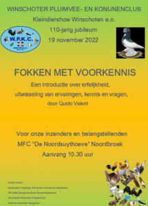 Oldambt – De 110 jarige sprankelende WPKC (Winschoter Pluimvee en Konijnen Club) organiseert 19 november in de Noordsuythoeve te Noordbroek een keuring voor konijnen, sier- en oorspronkelijke duiven. De hoenders, sier- en watervogels keuring konden niet doorgaan.