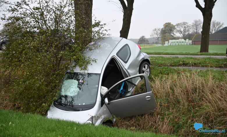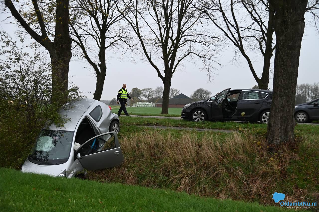 Beerta – Op de Ombocht/ Nieuweweg in Beerta zijn vrijdagmorgen om 08:25 uur door nog onbekende oorzaak twee auto’s tegen elkaar gebotst. Daarbij kwam een van de wagens in een droge sloot, alvorens eerst een boom werd geraakt.