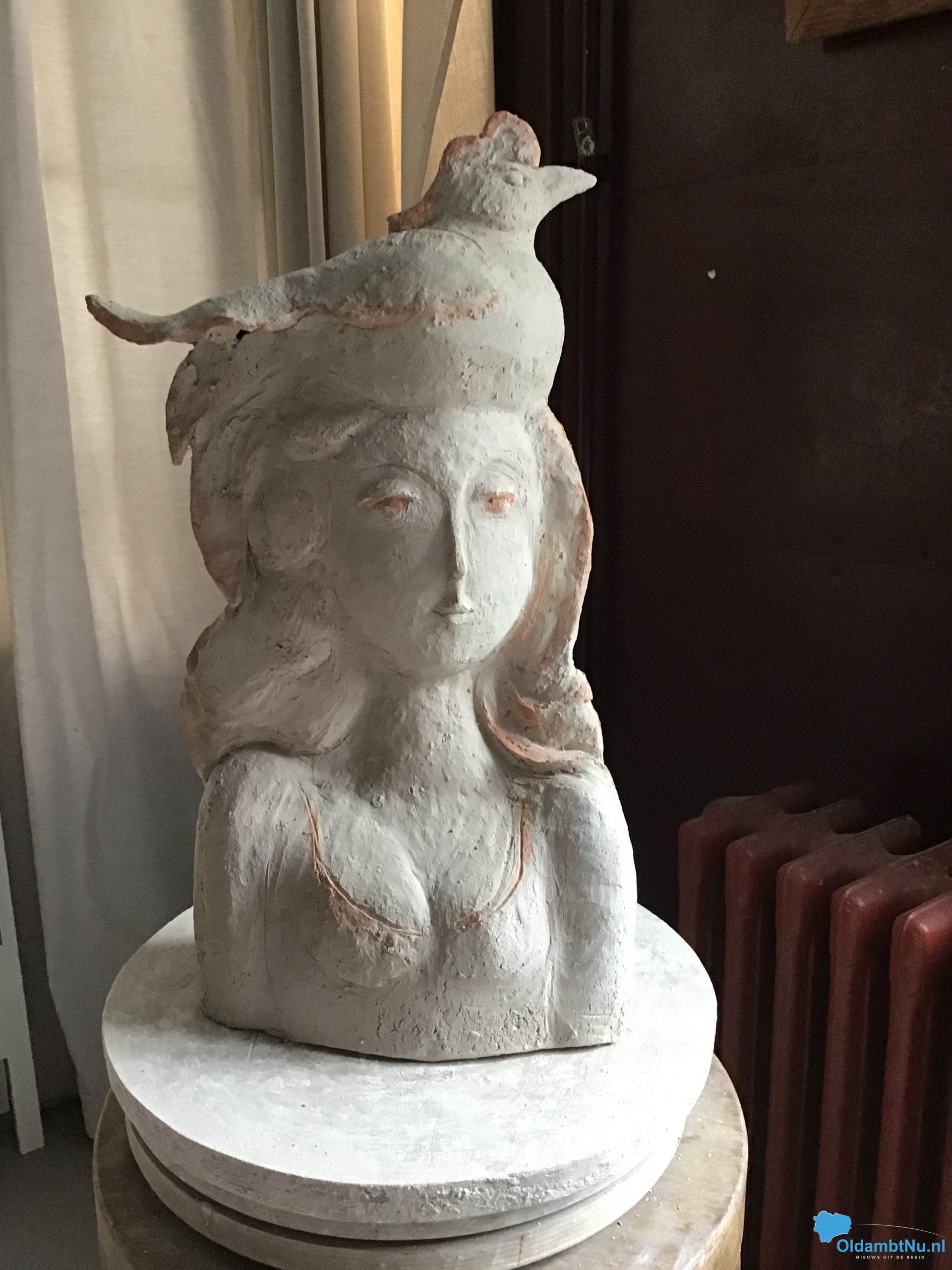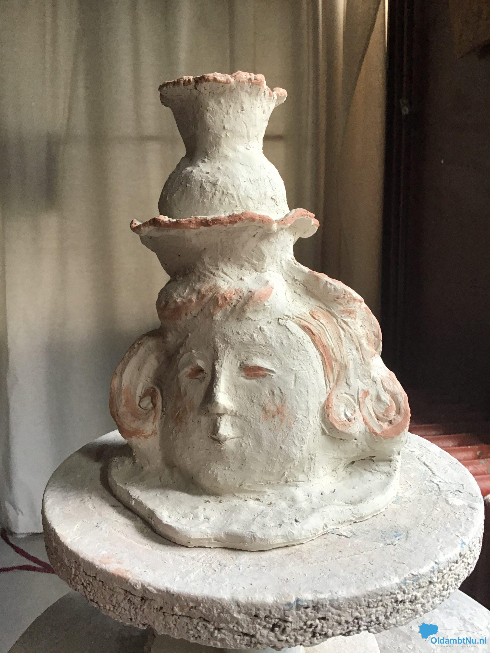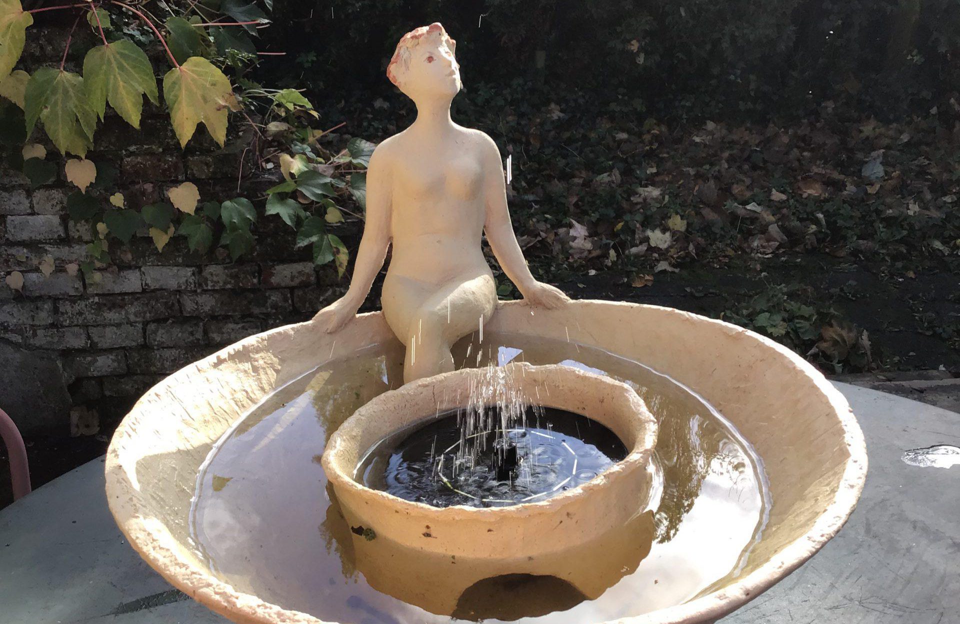 Bad Nieuweschans – Cilia de la Court maakt, behalve schilderijen ook beelden van keramiek (gebakken klei). Veelal stellen ze voor: vogels, katten, mensen, mens en dier, maar er zijn ook fonteintjes die sproeien op zonne-energie en waterspuwers voor bij een vijver.