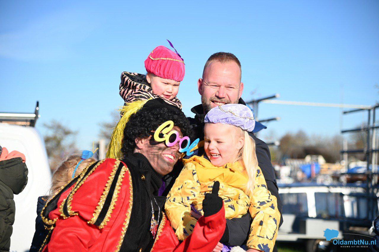 Midwolda/ Oostwold – Sinterklaas en zijn pieten hebben het er maar druk mee, in elk dorp is er wel een intocht voor de kinderen georganiseerd. Om niet te laat te komen in Midwolda kwam de Sint met ’toeters en bellen’ aan in de haven van Midwolda.