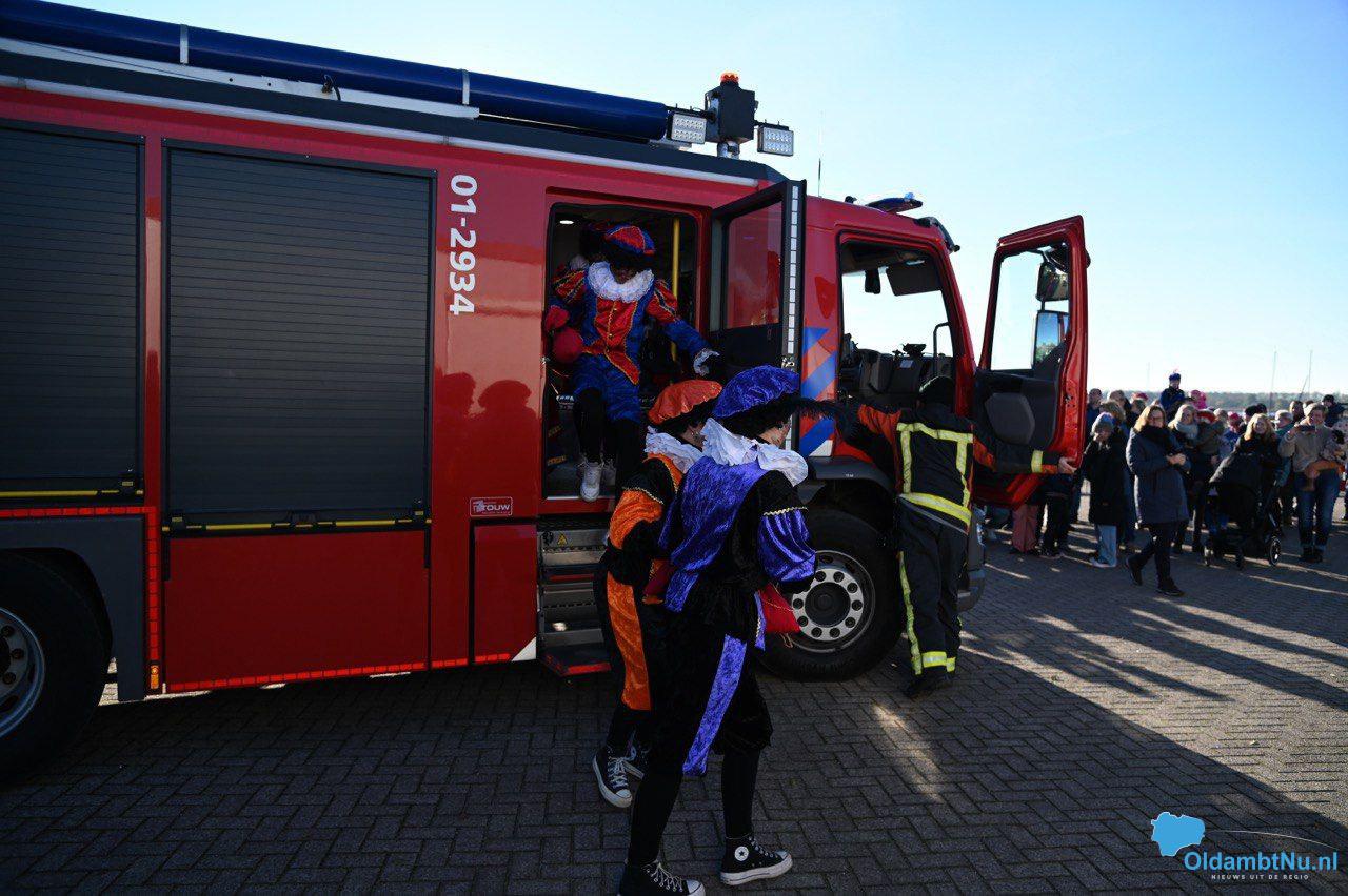 Eerder daarvoor waren de pieten al aangekomen op een boot. Ze waren alleen door de drukte de Sint vergeten. Niet lang daarna kwam er een brandweerwagen een rijden. De kinderen kregen snoepgoed en tekeningen werden aan Sint en Piet gegeven.