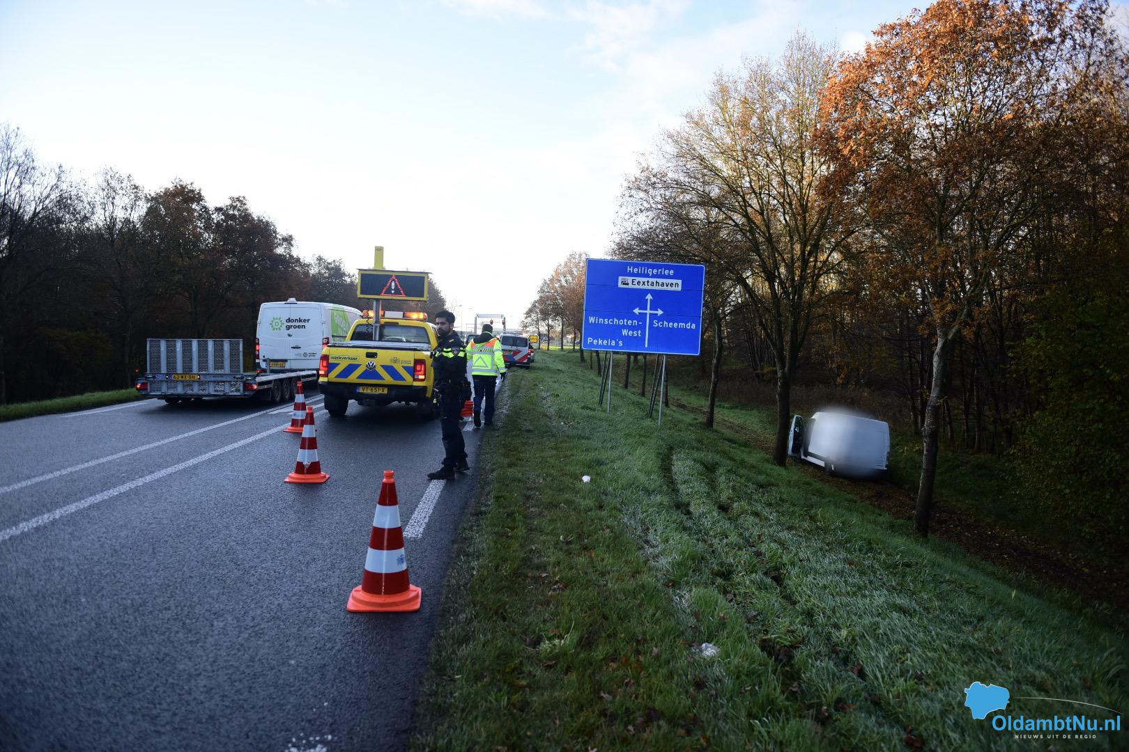 Een weginspecteur van de provincie Groningen kwam ter plekke om een rijstrook af te sluiten. De politie maakt rapport op. Berger Fruitema heeft de auto weer op de weg getrokken. Vervolgens kon de man zijn weg vervolgen.