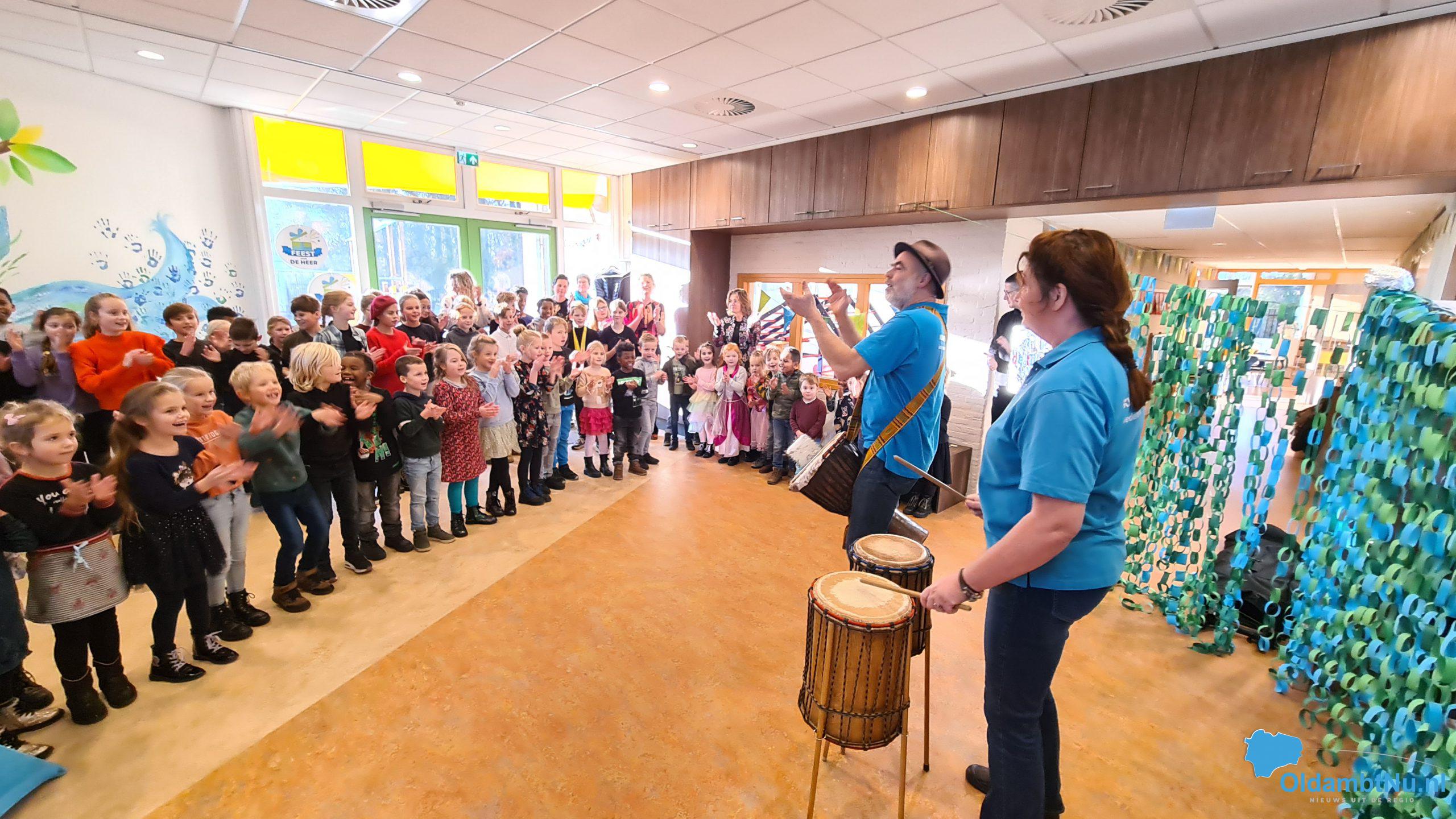 De Klanken Karavaan brachten de kinderen volop in beweging met hun zang en energieke klanken op percussie instrumenten.