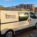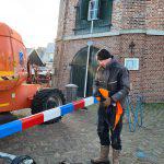 Winschoten – In een ijzige kou, maar wel met een strak blauwe lucht staan de mannen van Edwin Nieman Molenbouw uit Aadorp bij Molen Edens aan de Nassaustraat. De vangstok moet vervangen worden. Dit is een stok, die helemaal bovenin de molen naar buiten steekt, om de wieken wanneer deze draaien af te remmen.
