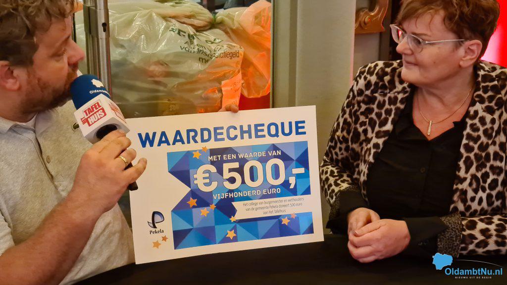 15:20 tot 15.40 uur: Wethouder Ellen van Klaveren van de gemeente Pekela is langs gekomen met een cheque van € 500,00. Zij vertelde tijdens een interview met Patrick van Campenhout dat behoorlijk veel inwoners zowel uit de gemeente Oldambt als die van Pekela zich niet durven aan te melden bij de Voedselbank, terwijl ze dit wel nodig hebben. Dit gebeurt uit schaamte, maar mevrouw Van Klaveren zei dat men hier overheen moet stappen.