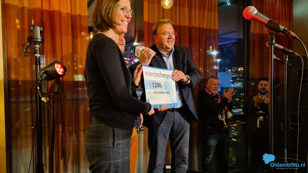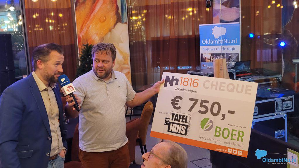21.10 uur: Patrick maakt een praatje met Wessel Boer van Boer verzekeringen-makelaardij die hier is aangeschoven aan één van de tafels in Het Tafelhuis. Toen Wessel aan Patrick vroeg om even te wachten tovert Wessel ineens een cheque tevoorschijn van maar liefst € 750,- euro.