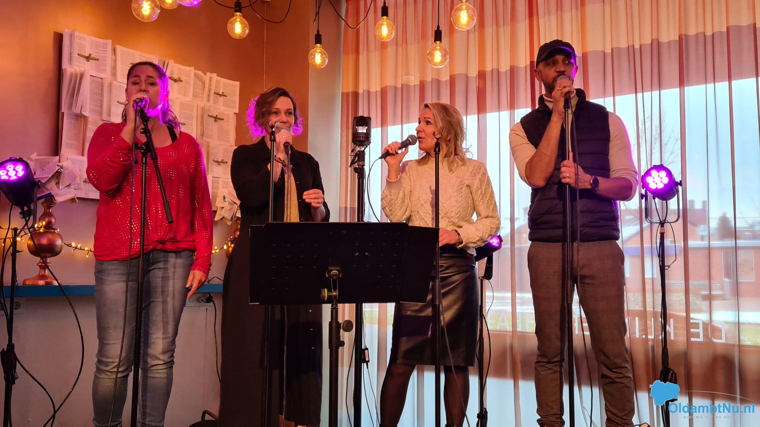 14:15 uur: Een band die al in een eerdere versie van Het Tafelhuis heeft opgetreden is de 4 persoonsformatie Blend. Met Roy en Sanne Keiserie, Liesbeth Wieringa en Karin de Haan, die ook deze middag prachtige  vierstemmige nummers als Halleluja ten gehore hebben gebracht. Ook de Kerstman is nog even langs gekomen om vele handen te schudden.