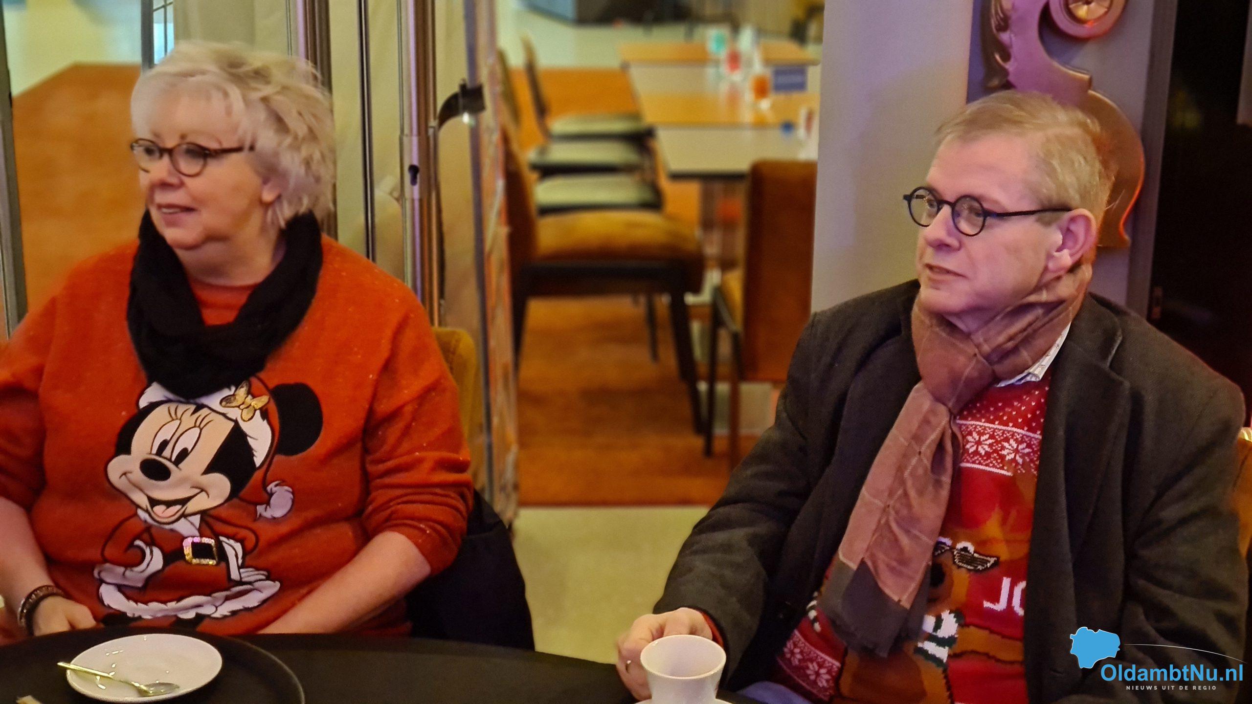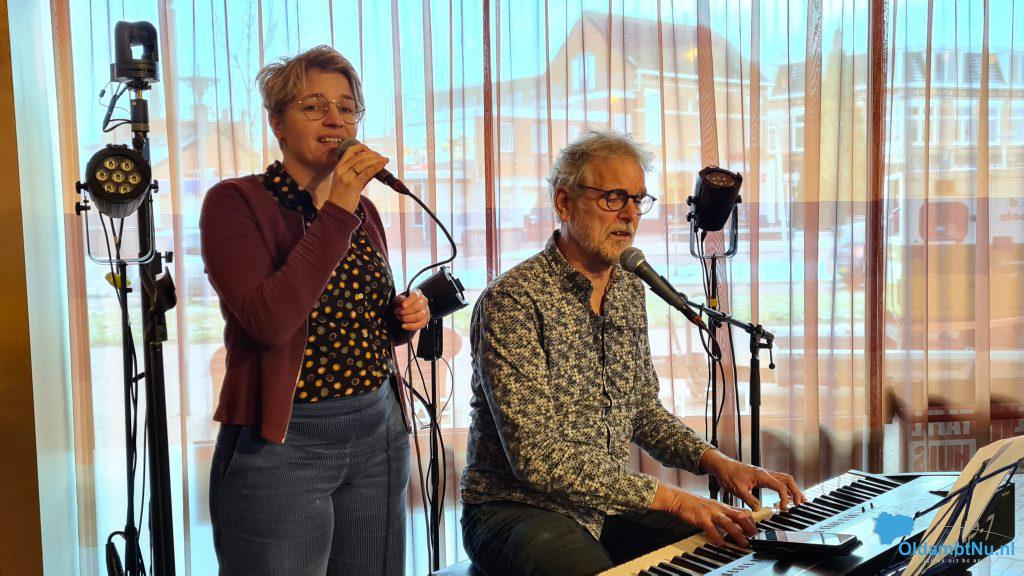 12:30 uur: Het duo Piet en Marijke uit Middelstum heeft 3 cabareteske liedjes in Het Tafelhuis op het podium gezongen. Het duo bestaat al 6  jaar. Marijke is in Amersfoort begonnen als muziektherapeute en is langzamerhand steeds meer de cabaretkant opgegaan. Piet speelt al zijn ´hele´ leven muziek, maar is nooit de professionele kant opgegaan. Maar samen als duo hebben ze  een heel leuk programma met lekkere luisterliedjes.