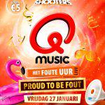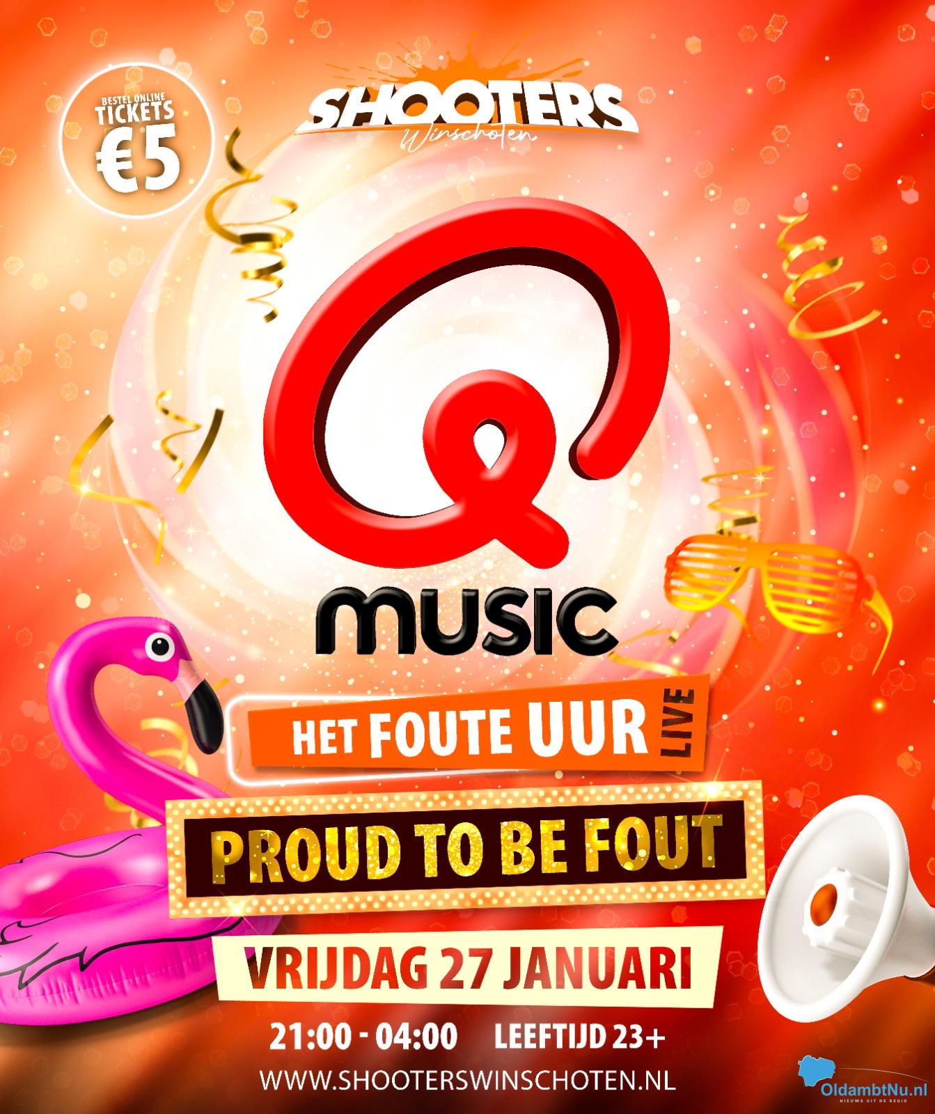 Ready to party!? Het foute Qmusic uur wordt vermenigvuldigd tot een compleet FOUTER DAN FOUT feestje! 27 januari, 21.00 tot 04.00 uur. Tickets verkrijgbaar via www.shooterswinschoten.nl.