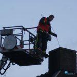 De brandweer ging gelijk op verkenning bij aankomst en inspecteerden de schoorsteenpijp, er kwam rommel uit. Met de hoogwerker ging de brandweer omhoog om het schoorsteenkanaal  schoon te maken met een ramoneur.