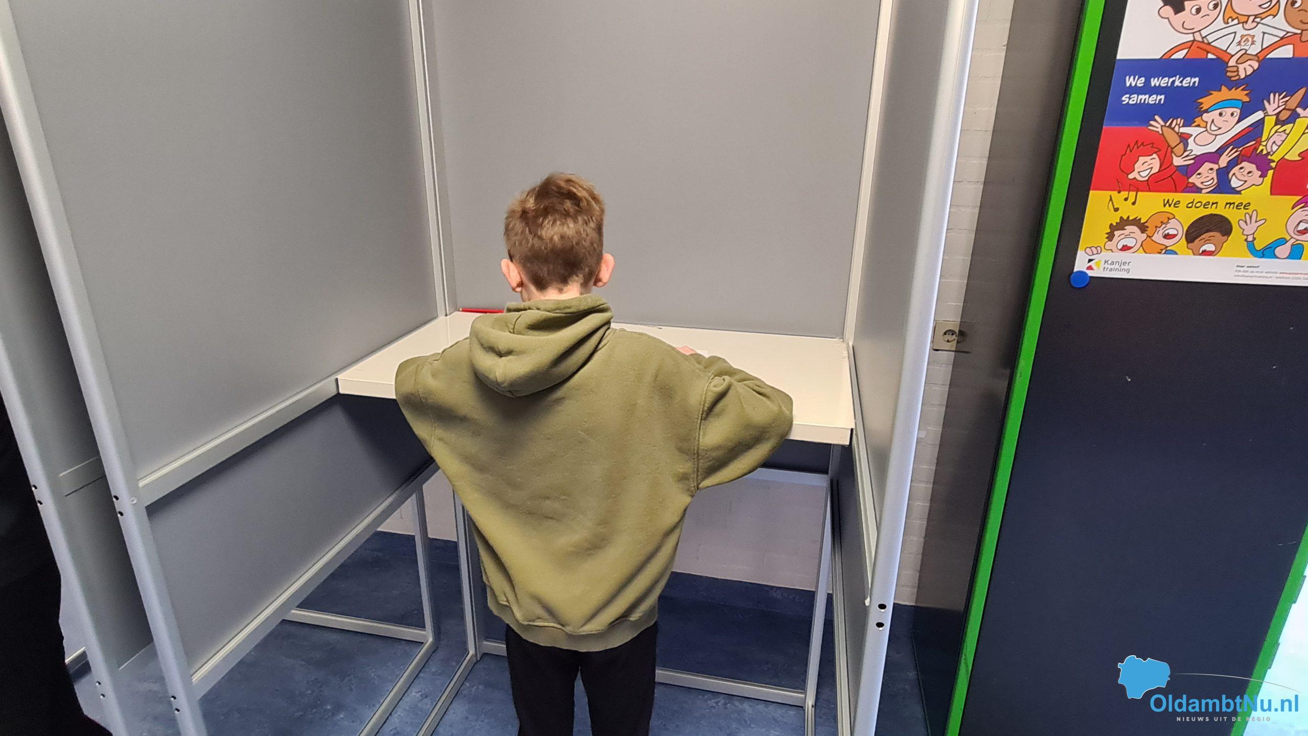 Hierna konden de kinderen echt gaan stemmen, net zoals de volwassenen dit ook doen, met een stembiljet, controle door de burgemeester en de griffier op een identiteitsbewijs. En tenslotte kon de stem uitgebracht worden in een origineel stemhokje, inclusief het rode potlood.