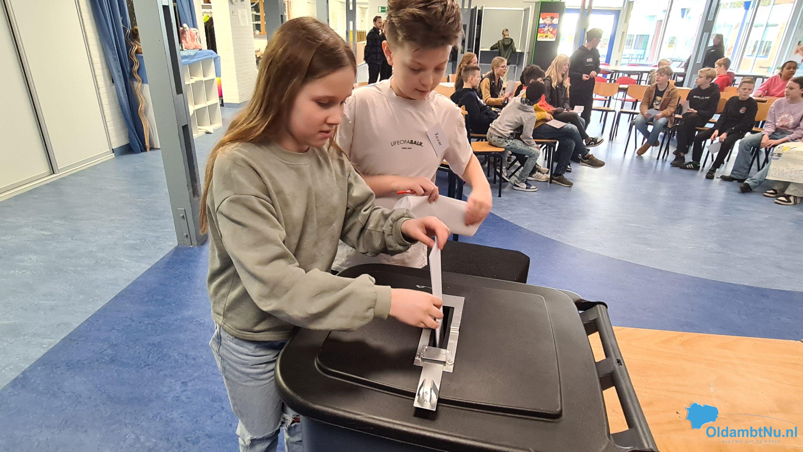Winschoten – Het ging er vrijdagmorgen echt aan toe bij leerlingen van groepen 7 en 8 van obs De Waterlelie, een les met een ‘echte’ verkiezing, waar ook burgemeester Cora-Yfke Sikkema en plaatsvervangend griffier Jeroen Bottema deel van hebben uitgemaakt.