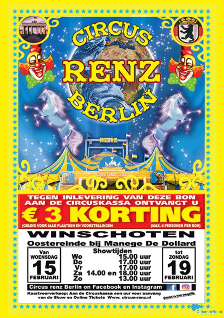 Winschoten – Het enige echte circus Renz Berlin is in 2023 eindelijk weer op tournee in Nederland en komt van 15 t/m 19 februari naar Winschoten bij manege de Dollard aan het Oostereinde. Voorstellingen zijn op woensdag om 15.00 uur, donderdag en vrijdag om 17.00 uur. Zaterdag om 14.00 en 18.00 uur. Zondag om 13.00 uur.