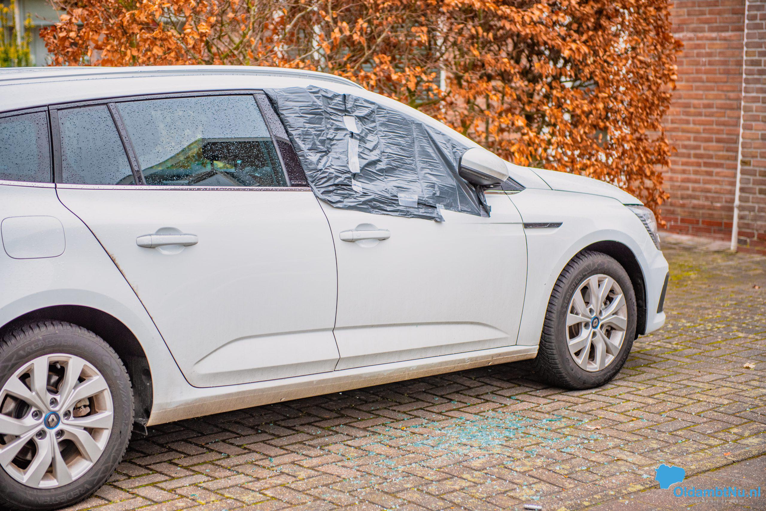 Bij sommige auto’s is één raam aan diggelen, maar bij andere zijn er wel vier ruiten uit. De schade is niet alleen bij auto’s die langs de weg stonden geparkeerd, maar ook bij auto’s die op een oprit stonden.