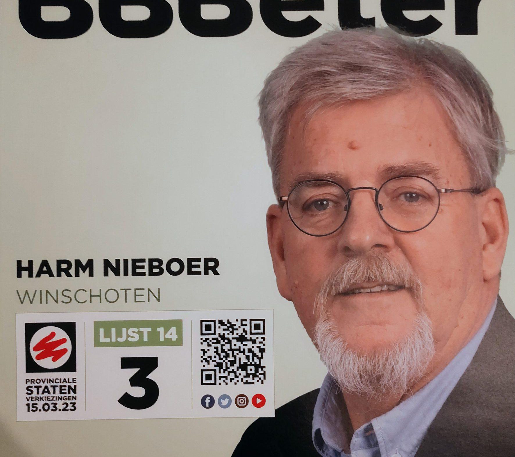 Winschoten – Harm Nieboer uit Winschoten staat tijdens de verkiezingen op woensdag 15 maart op de kieslijst voor de Provinciale Staten Groningen op nummer 3 voor de BoerBurgerBeweging (BBB).