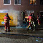 Een naastgelegen bouwcontainer raakte beschadigd door de vlammen.