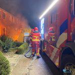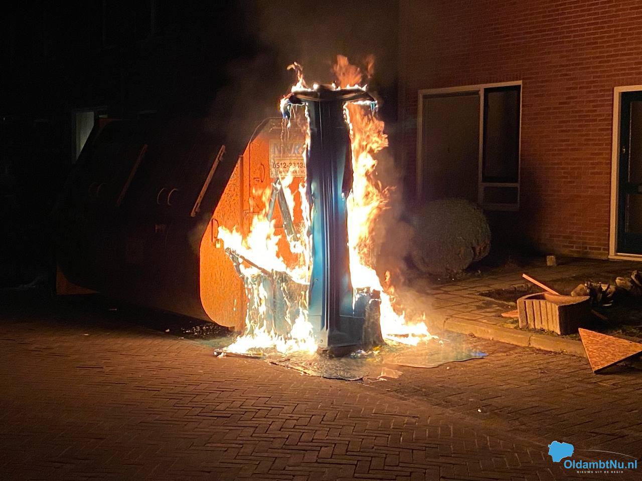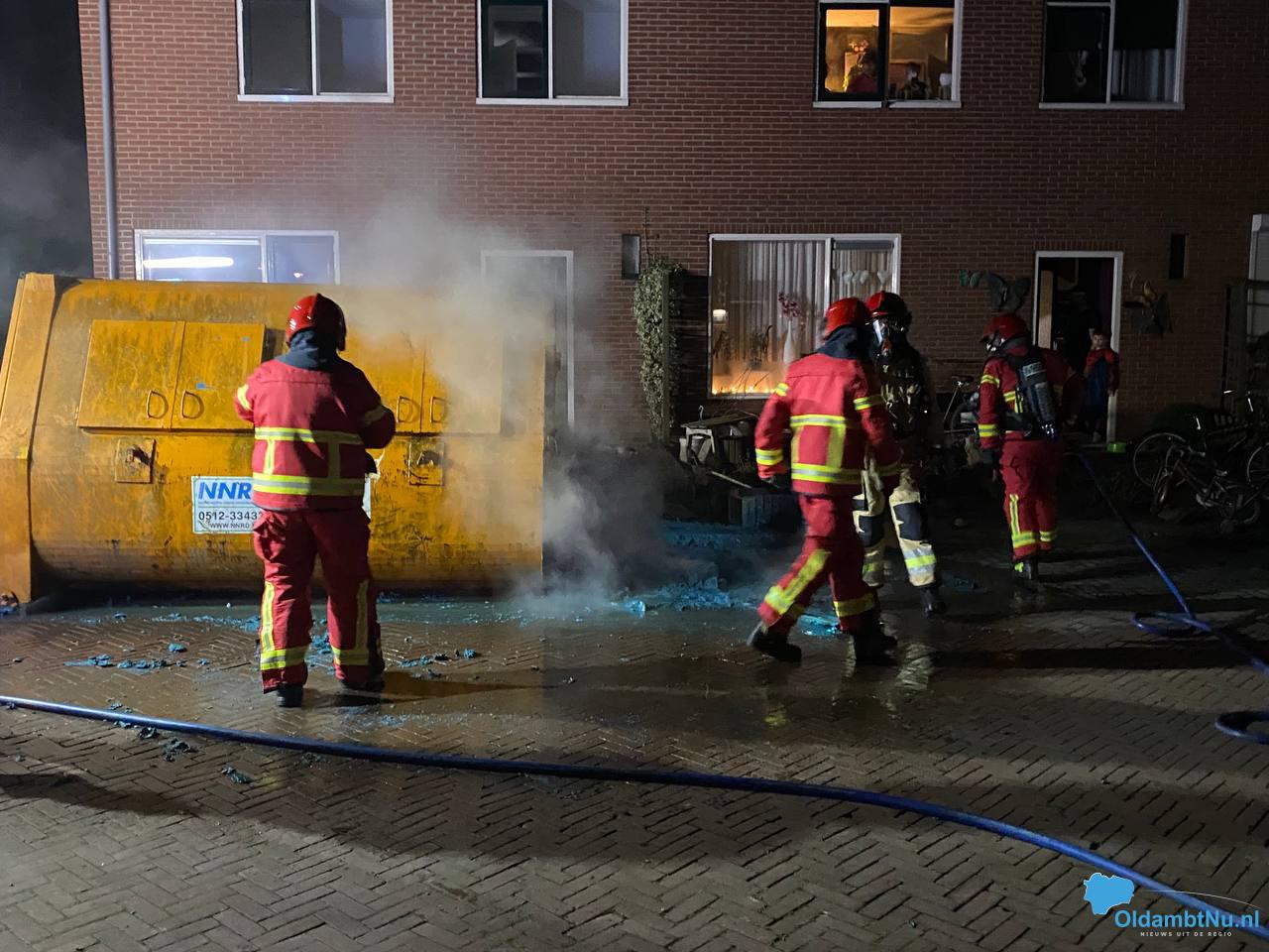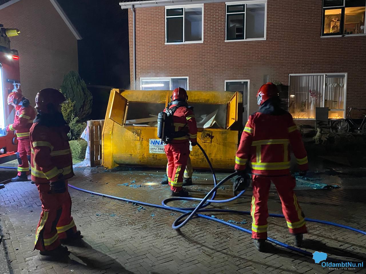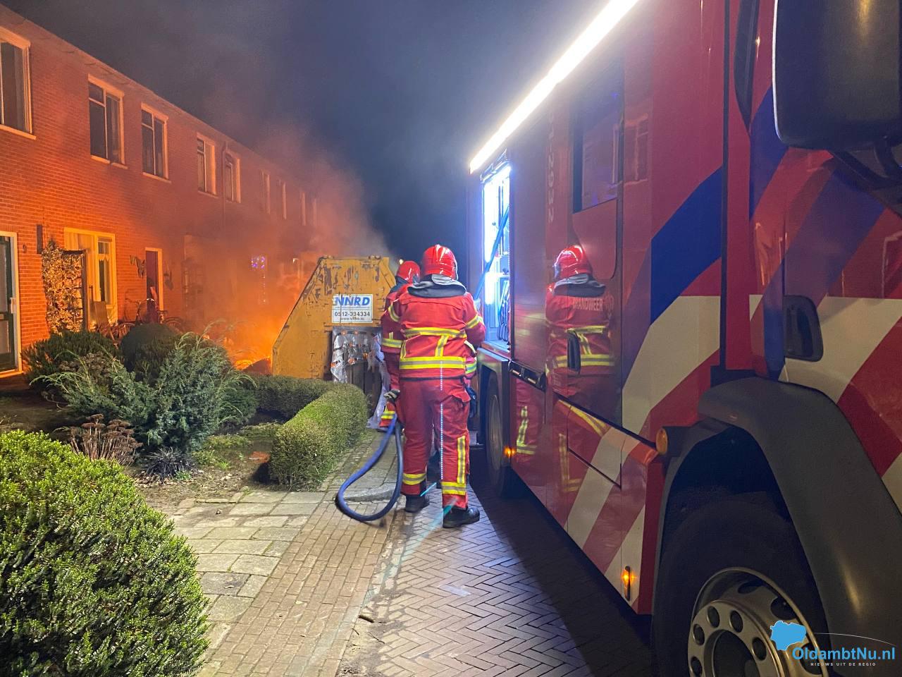 Een naastgelegen bouwcontainer raakte beschadigd door de vlammen.