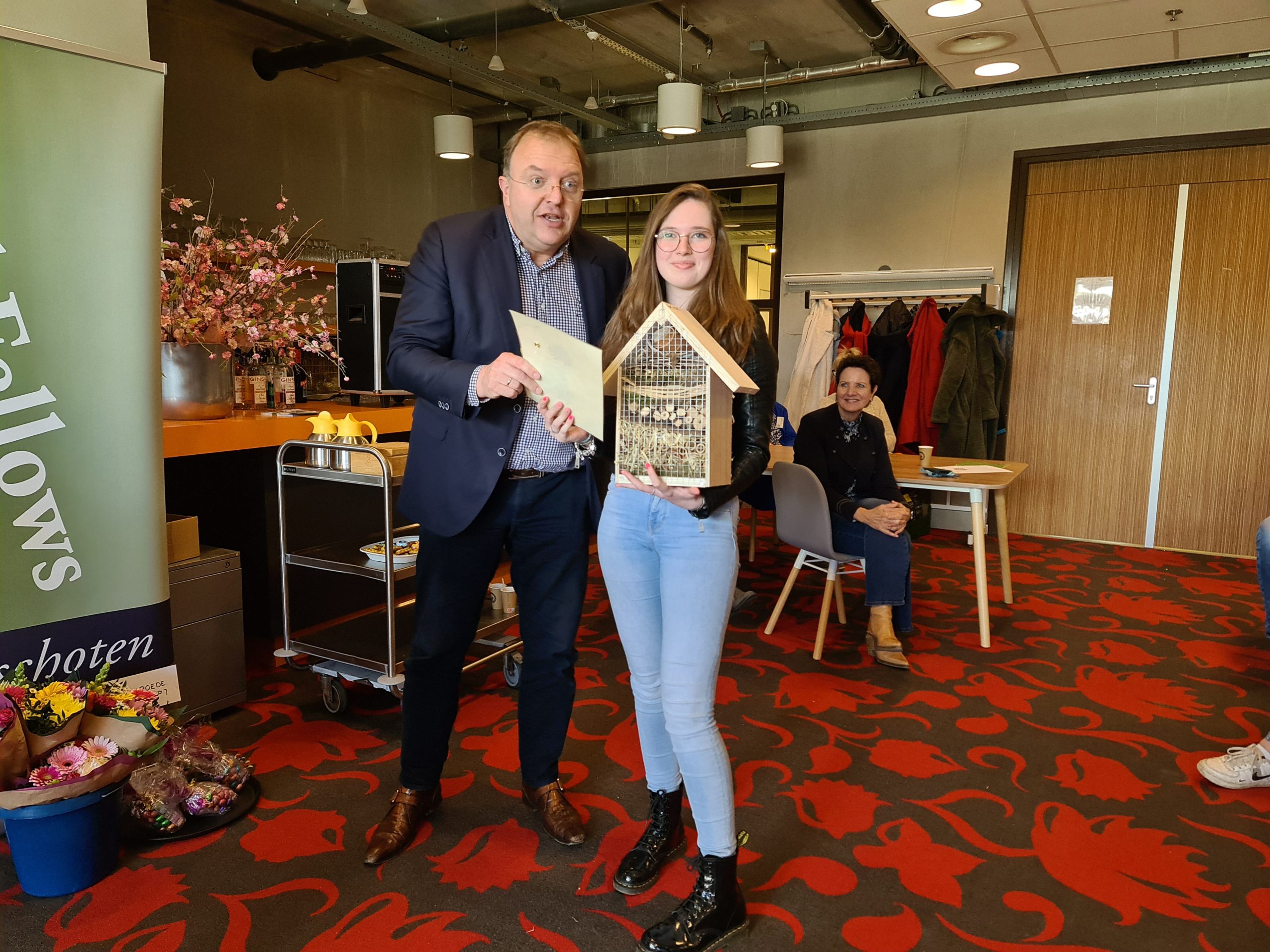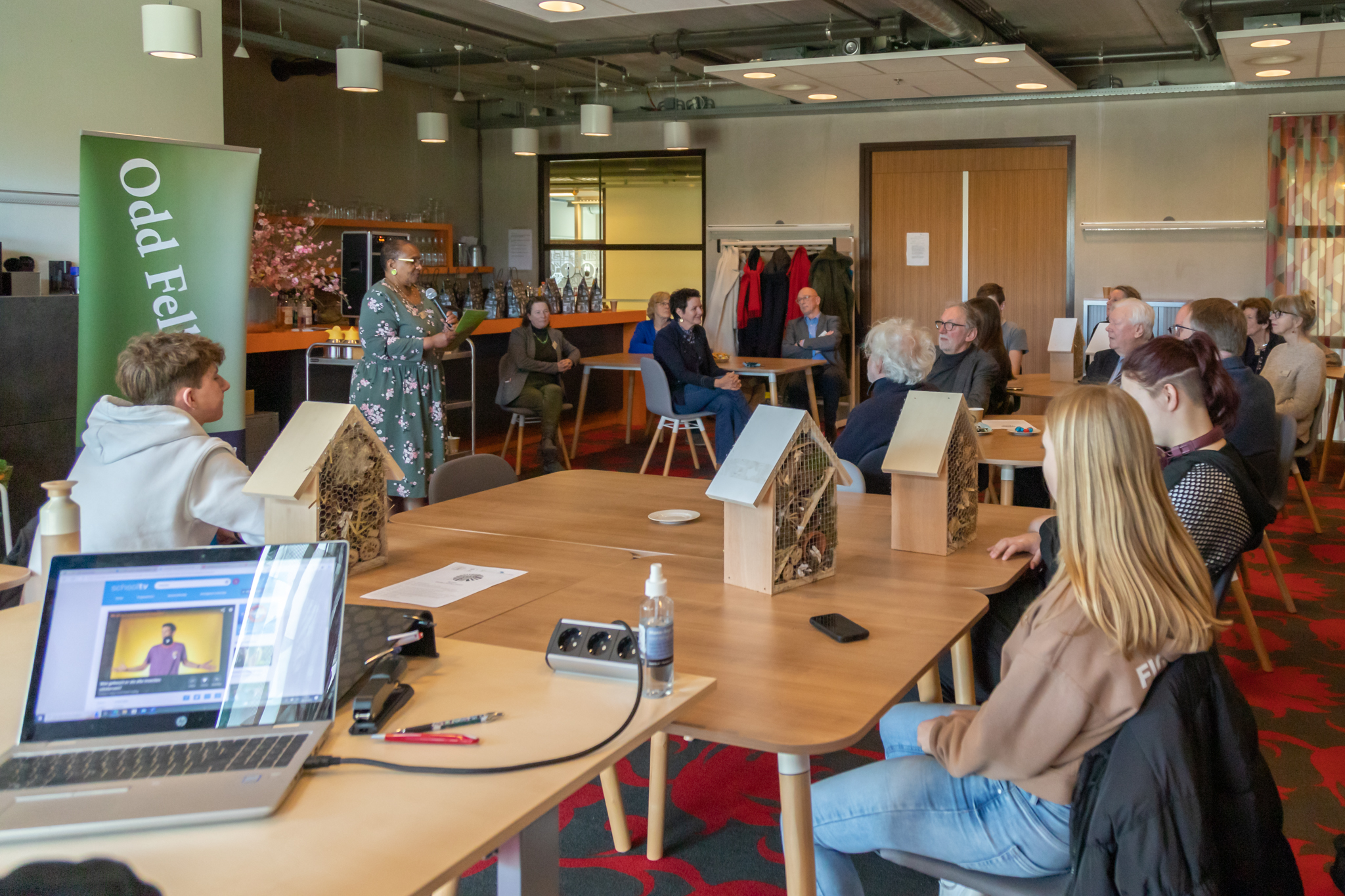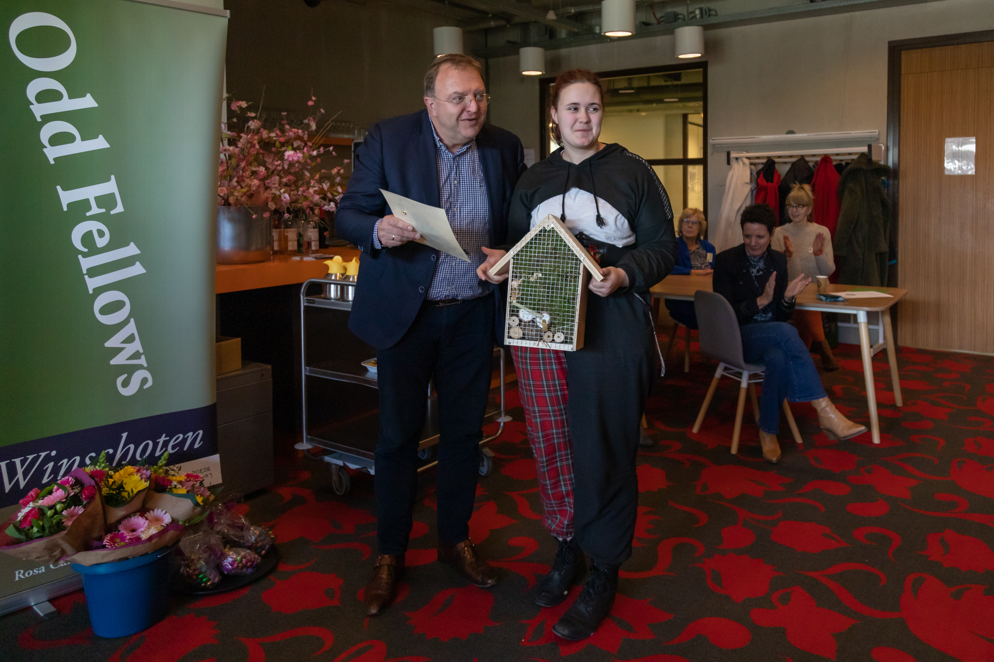 Deze keer waren drie insectenhotels bestemd voor gezinshuis De Hondsroos en de andere insectenhotels voor verkoop t.g.v. leerlingen van de school die wat extra ondersteuning heel goed kunnen gebruiken. Initiatiefnemers waren de F.D. Roosevelt Loge en de Guldenroede Club van de Winschoten Odd Fellows. Alle veertien leerlingen ontvingen een Award en een VVV bon van wethouder Wünker. Naast de Awards en de vele goede woorden ontvingen de leerlingen een goodiebag met geschenkjes (van o.a. Welkoop, Nieborg en McDonalds). voor hun inspanning om van deze actie een succes te maken.