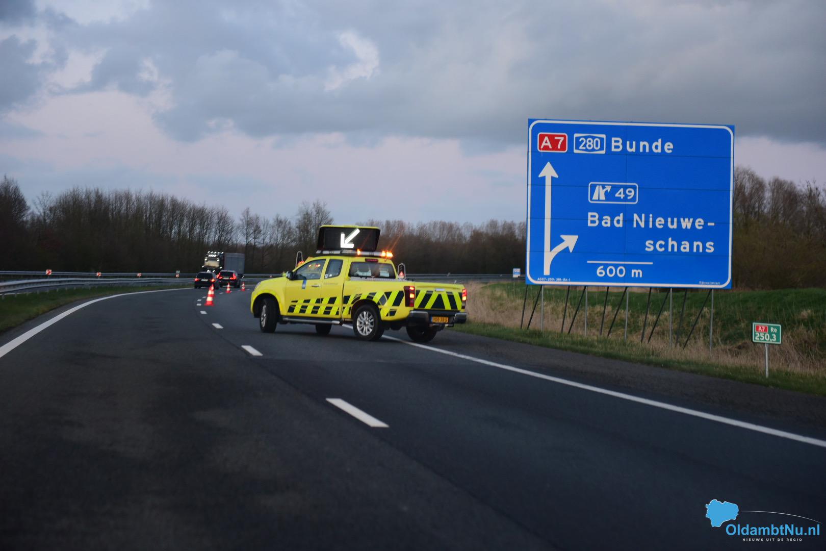 Winschoten – Maandagavond raakte een voertuig door onbekende oorzaak van de weg op de A7 tussen Klein Ulsda en Bad Nieuweschans.