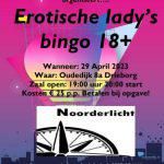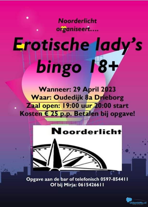 Drieborg – Het buurthuis Noorderlicht in Drieborg organiseert op zaterdag 29 april een erotische 18+ ladies bingo. De zaal gaat open om 19.00 uur en de start zal om 20.00 uur zijn.