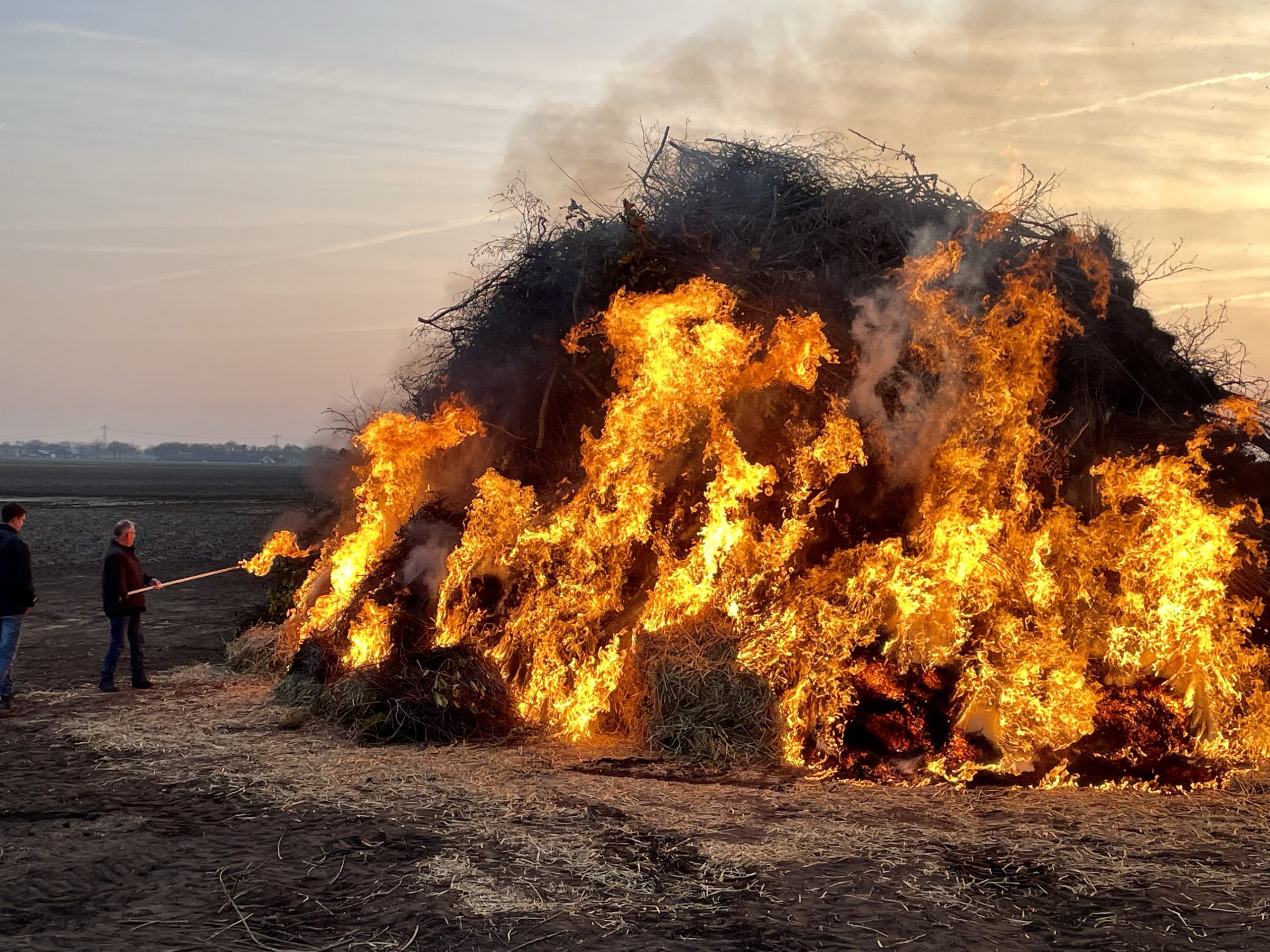 Meeden – Dit jaar was er geen paasvuur in Oldambt, daarom trok menig Oldambtster naar een buurgemeente. In de gemeente Midden-Groningen en Westerwolde waren meerdere paasvuren, zo ook in Meeden.