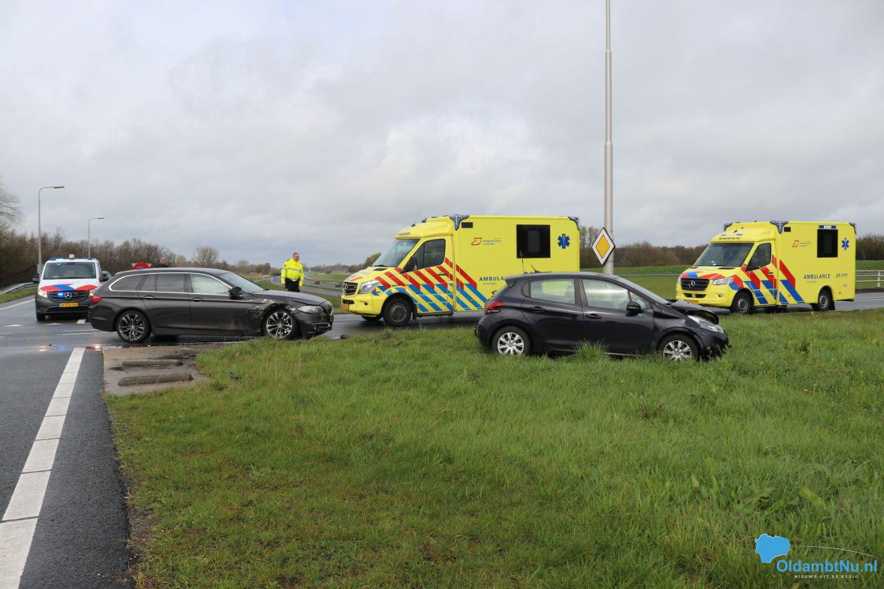 Door nog onbekende oorzaak raakte daar twee voertuigen met elkaar in botsing. Twee personen zijn overgebracht naar het ziekenhuis voor verder onderzoek. De politie brengt het ongeval in kaart.