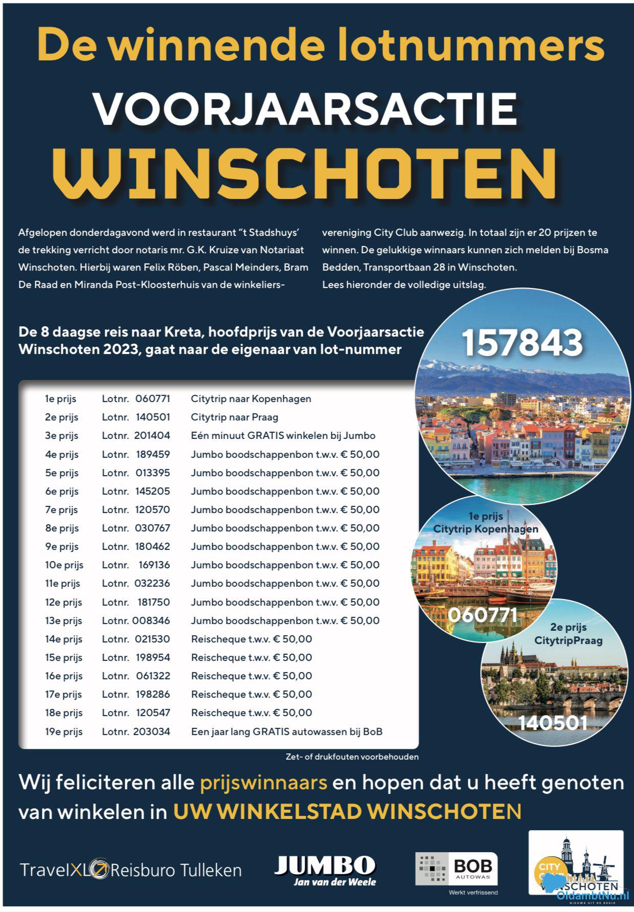 Winnende loten Voorjaarsactie Winschoten 2023 bekend