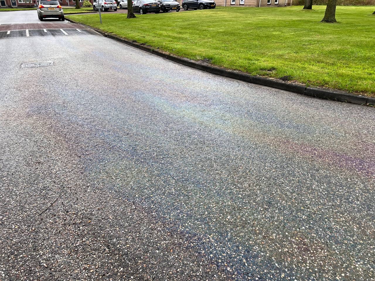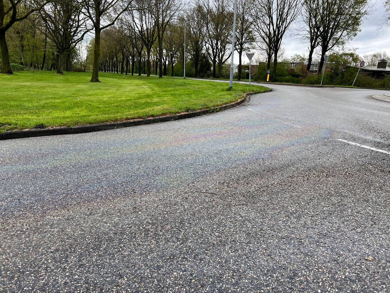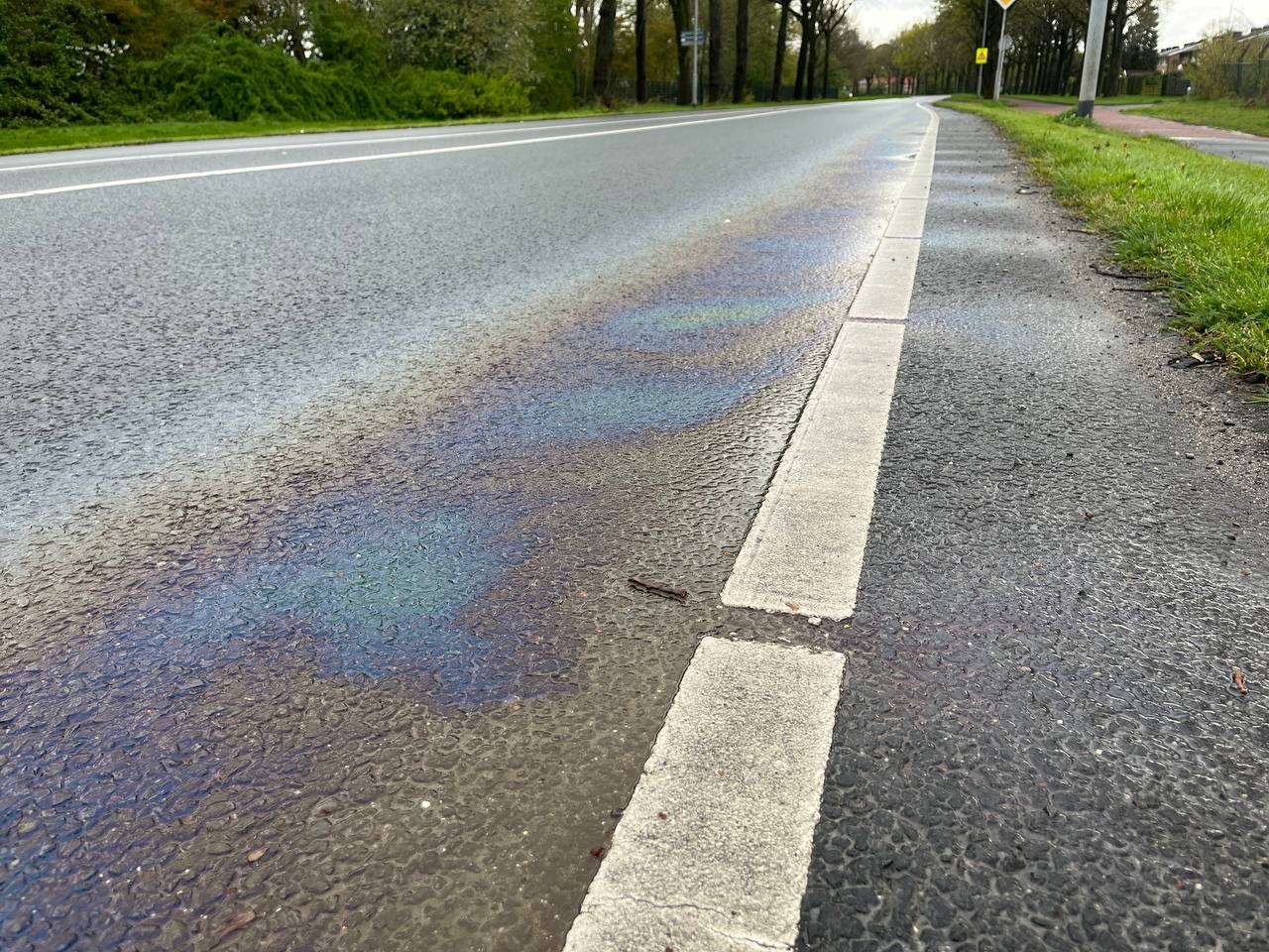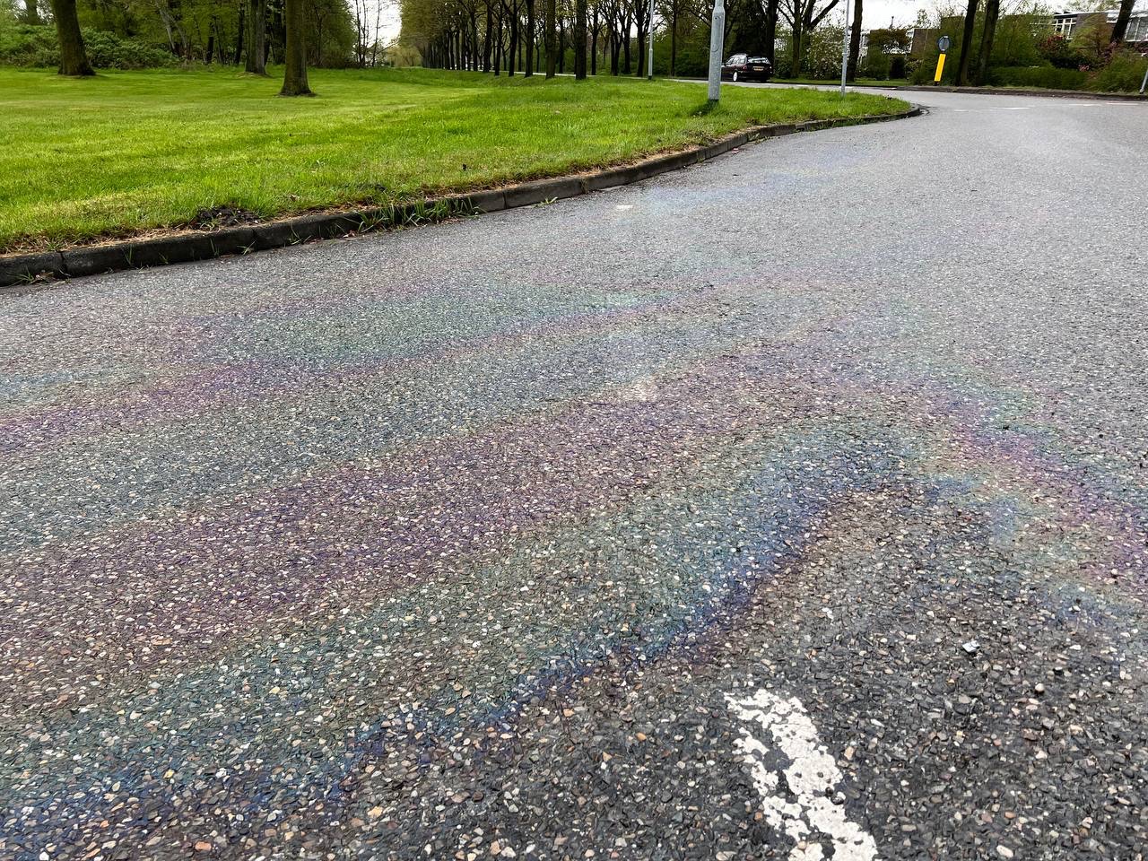Let op! Glad wegdek door fors oliespoor