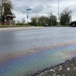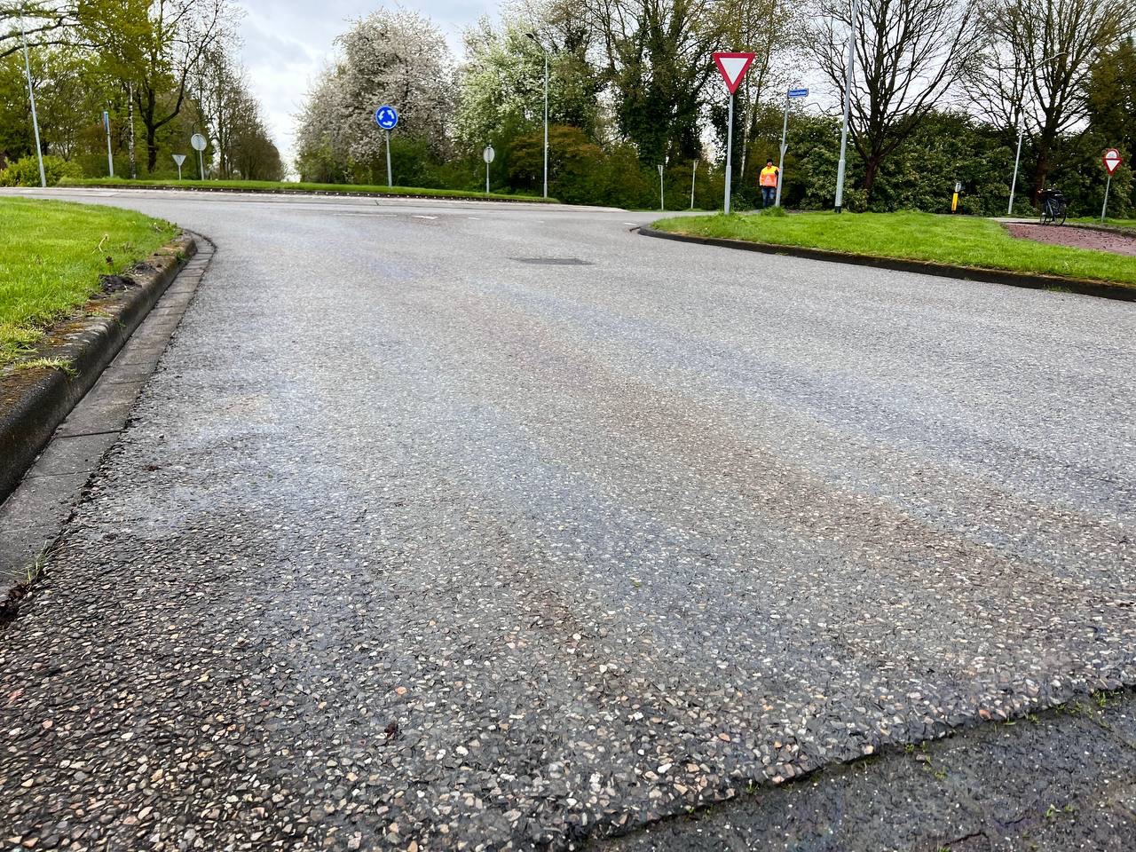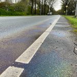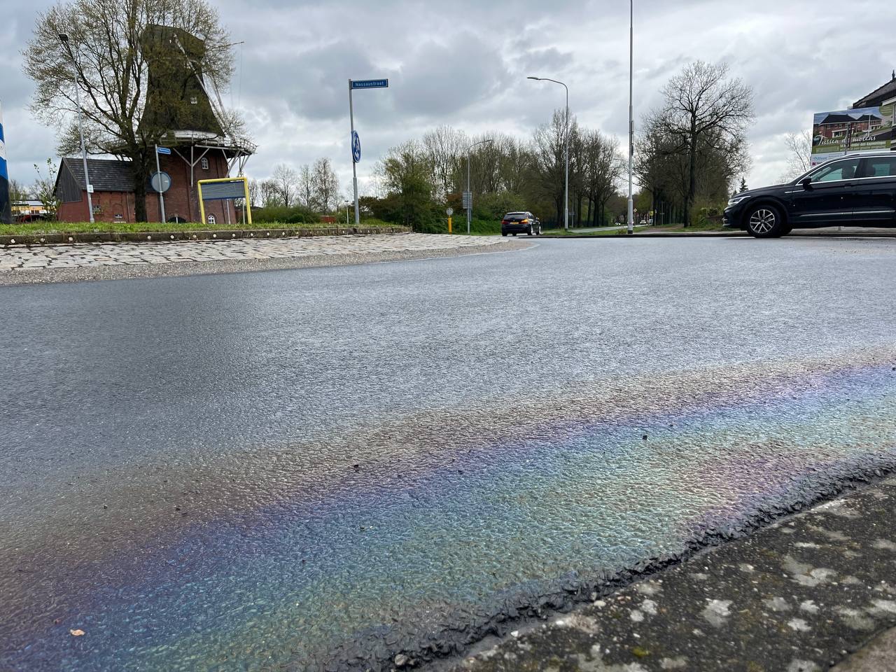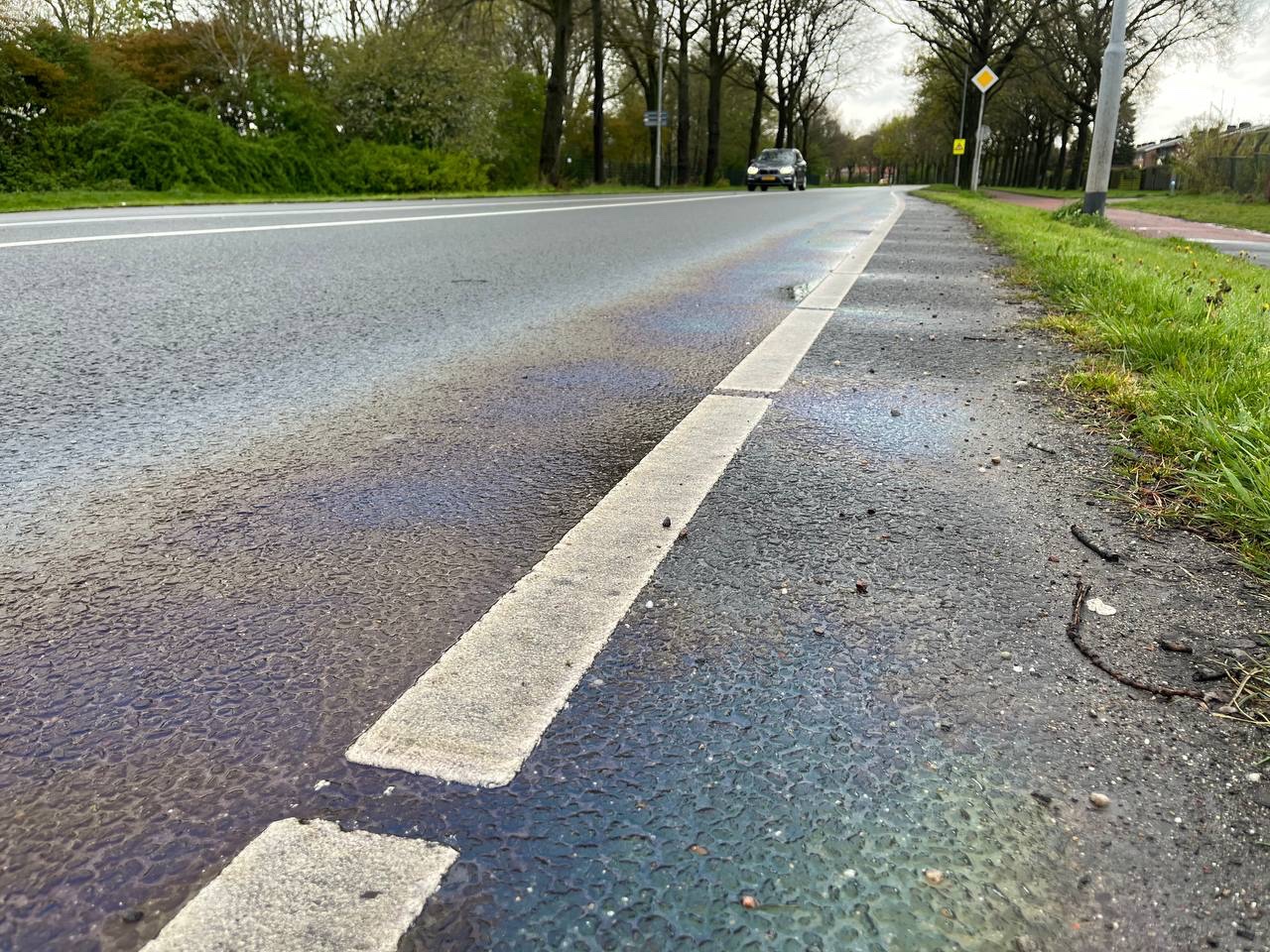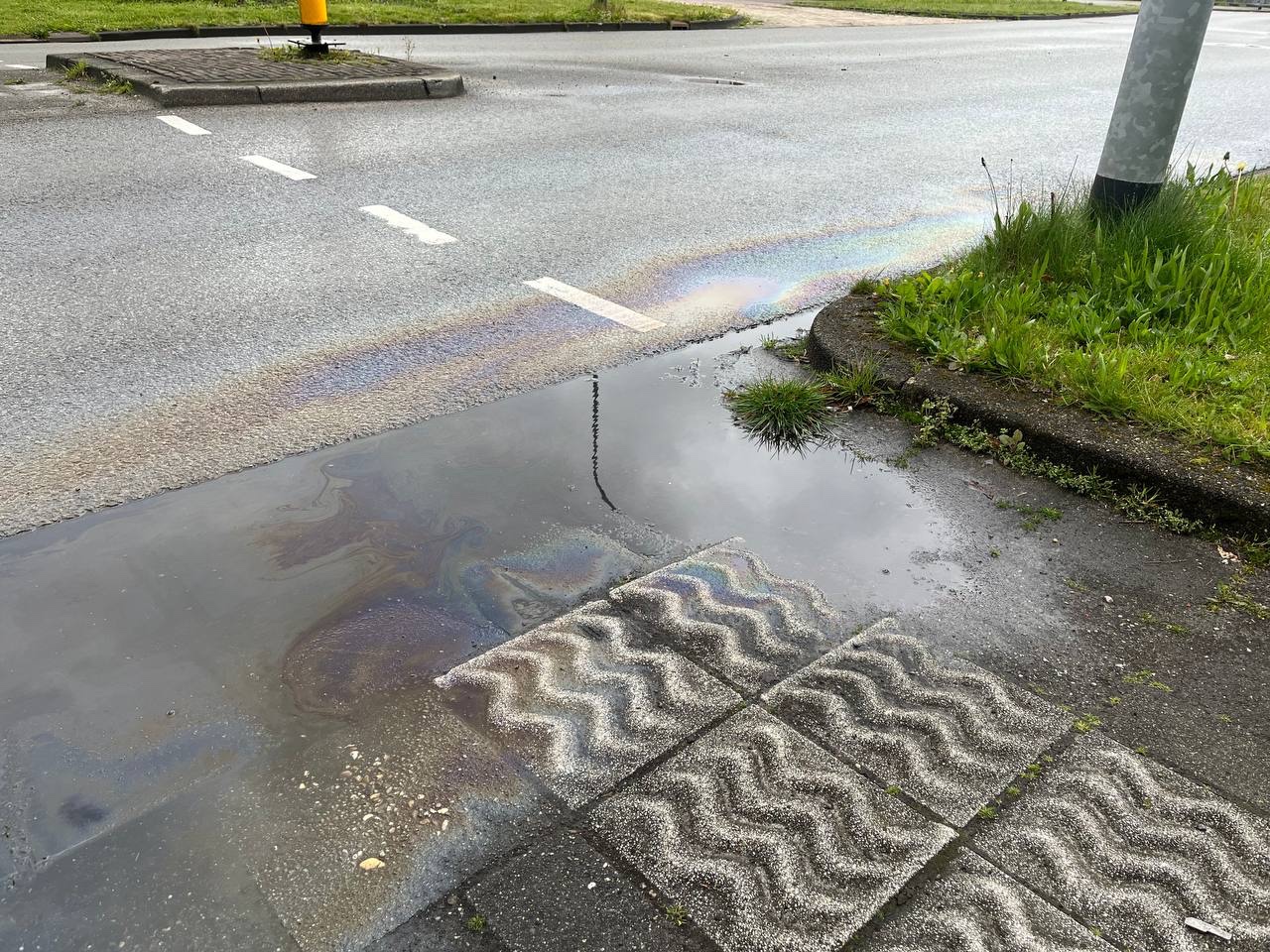 Let op! Glad wegdek door fors oliespoor