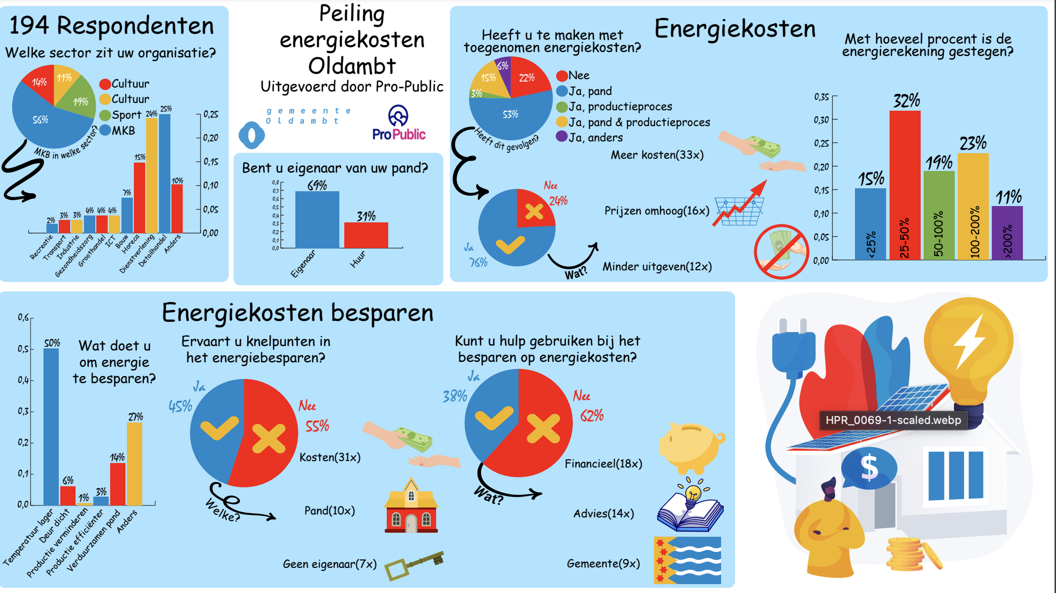 Oldambt – Tot en met 14 april konden maatschappelijke instellingen, cultuurinstellingen, sportorganisaties en mkb een enquête invullen over de gevolgen van de gestegen energiekosten. De enquête is 194 keer ingevuld. Alle respondenten hartelijk dank voor het invullen! Een samenvatting van de uitkomsten is te vinden in bijgevoegde Infographic.