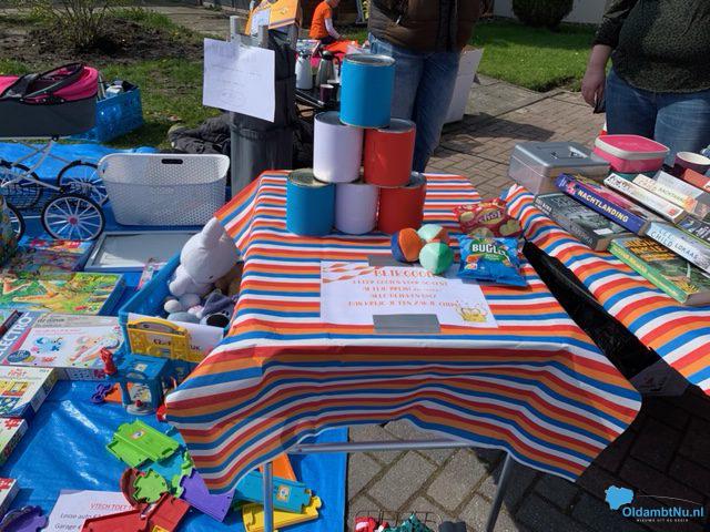 Er werd op allerlei manieren geprobeerd tweedehands spulletjes te verkopen, maar ook waren er aardbeienplantjes, vers gerookte vis en handbeschilderd aardewerk en kaartjes te koop. De inwendige mens werd natuurlijk niet vergeten, met gebak, poffertjes en suikerspinnen. De lokale bakker moest meerdere malen de heerlijke tompoezen en oranjekoek bij bakken om aan de vraag te voldoen.