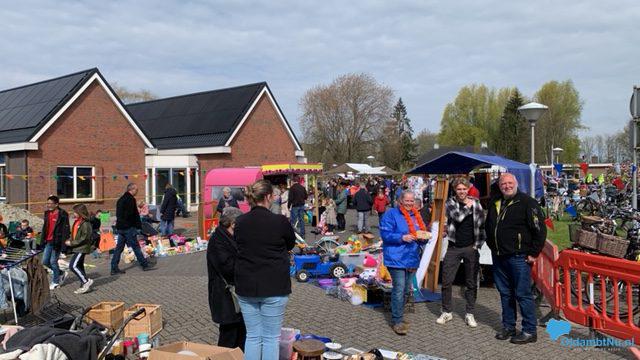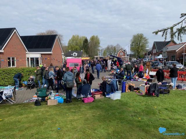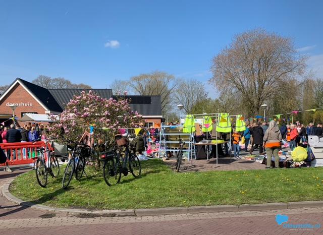 Midwolda – Het parkeerterrein midden in Midwolda bij De Schakel was op Koningsdag gevuld voor de traditionele vrijmarkt. Het Oranjecomité was blij verrast met zoveel deelnemers. Het oorspronkelijke plein werd zelfs een stuk uitgebreid om iedereen plek te bieden.