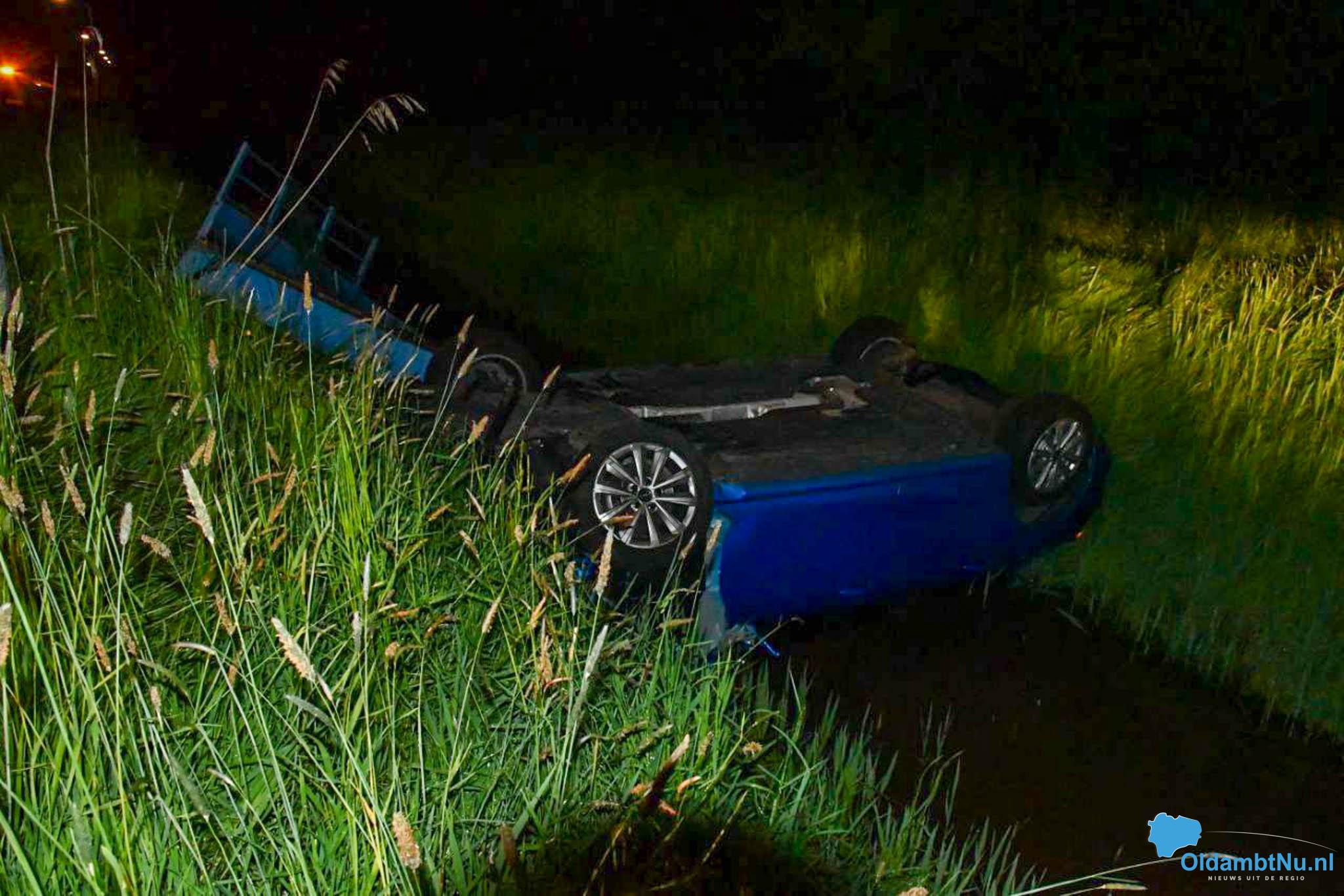 Finsterwolde – Woensdagavond rond 23.00 uur heeft er een verkeersongeval plaatsgevonden op de Kromme Elleboog in Finsterwolde. Een automobilist botste op een stilstaande auto met aanhanger en raakte vervolgens met zijn auto op de kop in een nabijgelegen sloot.