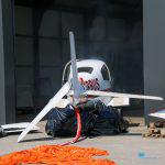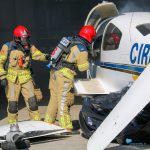 Een vliegtuig heeft een noodlanding gemaakt en is tegen een loods tot stilstand gekomen, er ontstaat een klein brandje in het vliegtuig. De piloot is erg geschrokken en moet uit het toestel worden geholpen. Naast de loods heeft een beschonken tractorbestuurder een steiger aangereden waarop een zonnepanelenmonteur aan het werk was, de monteur valt van de steiger en heeft een forse hoofdwond.