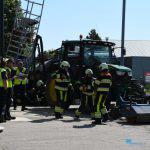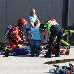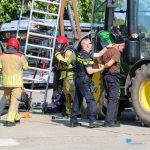 Voor de tractor hangt een veegmachine waaronder een fietser bekneld is geraakt tijdens hetzelfde ongeval. Tot overmaat van ramp lekt de tank met bestrijdingsmiddel die achter de tractor hangt, gelukkig blijkt dit geen heel erg gevaarlijke stof te zijn. Op het moment dat de brandweer arriveert, draait een lijnbus voor de brandweerauto dezelfde straat in en blokkeert de weg. Na de vraag om de weg vrij te maken, geeft de chauffeur hier gehoor aan. De brandweer kan daarna aan de bovenstaande klus beginnen.