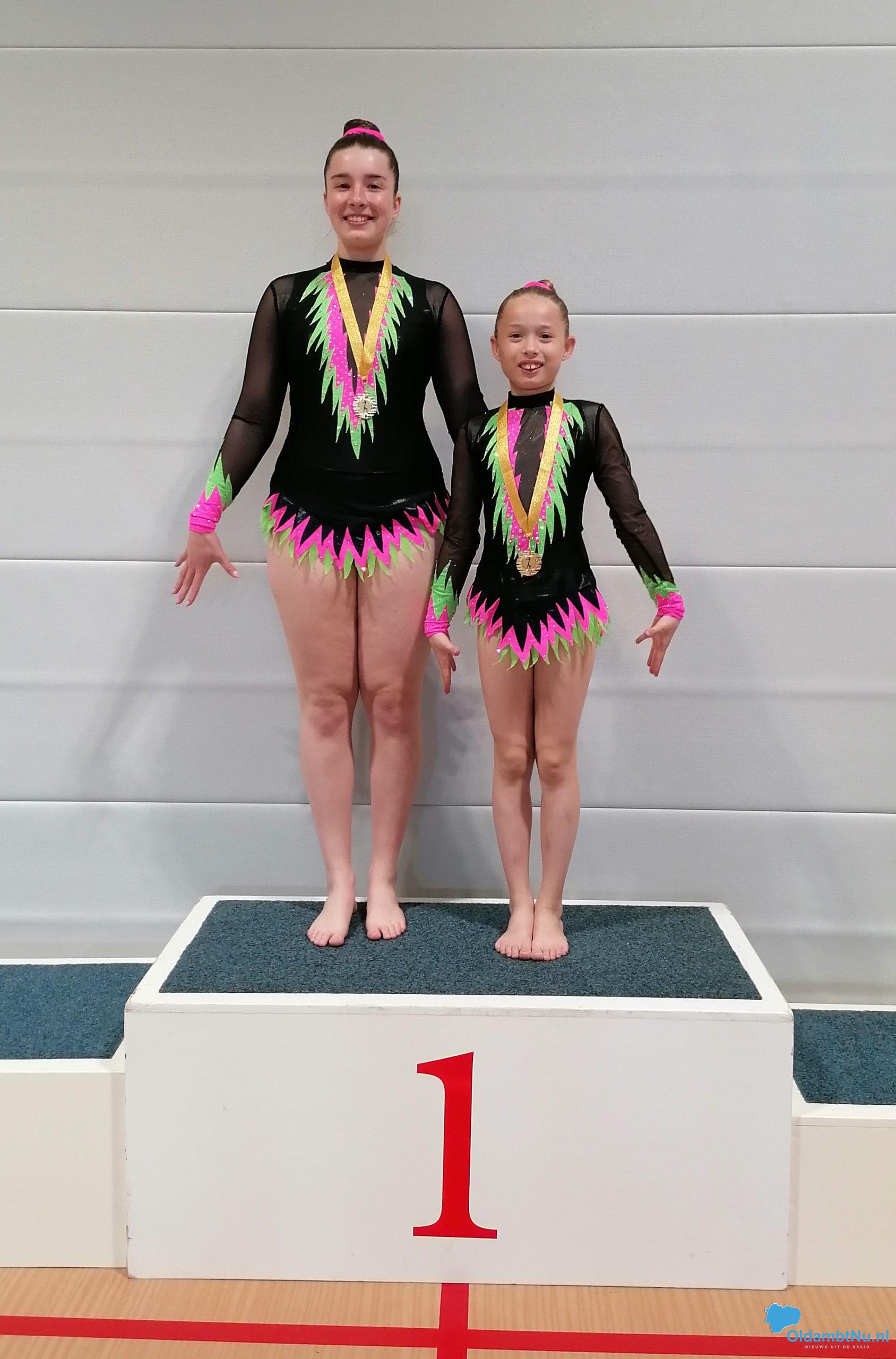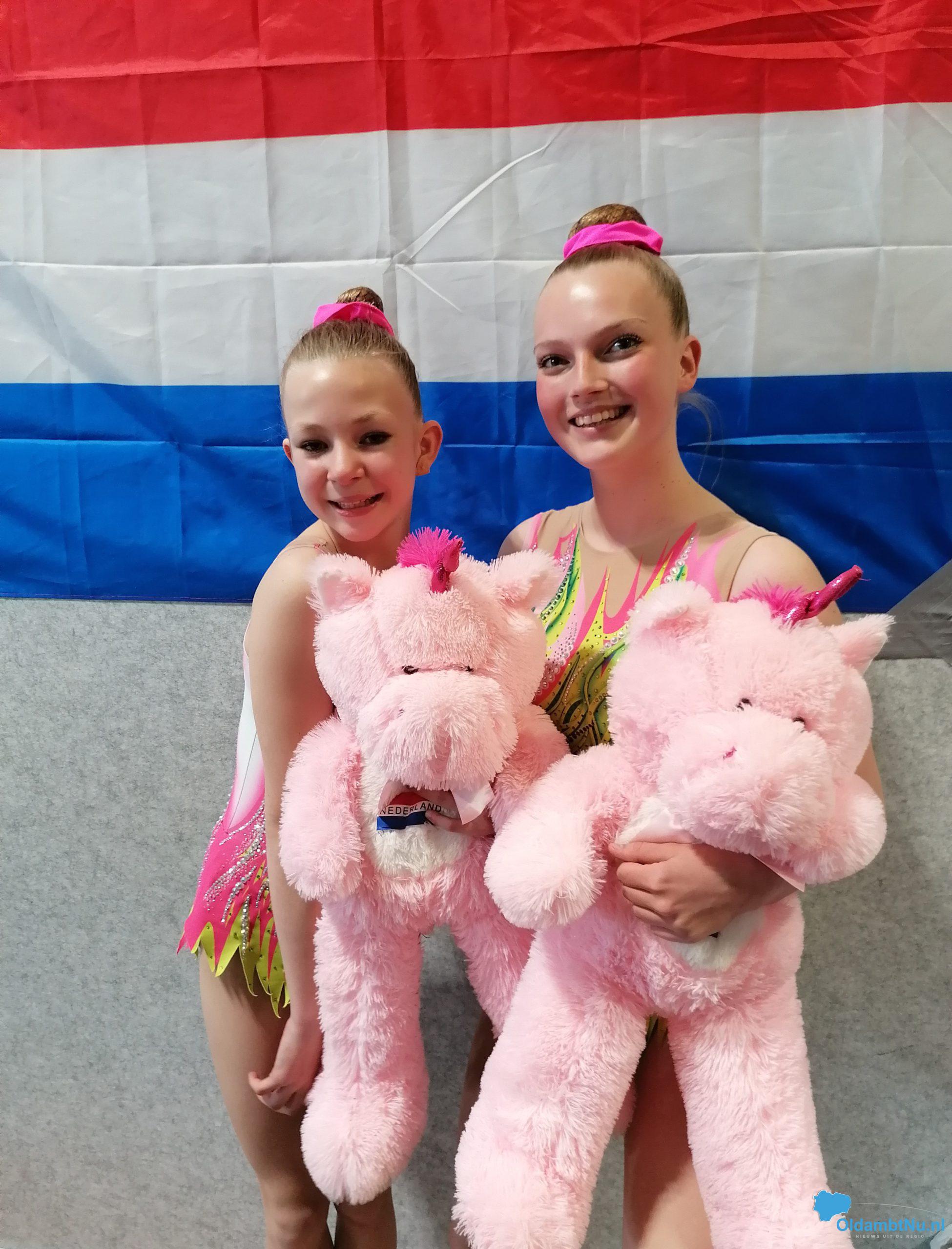 Bij de duo’s in de E-lijn lieten Fayèn Sterenborg en Meike Koning van BATO Winschoten een hele keurige oefening met mooie acrobatische elementen zien. Ze behaalden een score van 23.060 punten en werden daarmee overtuigend eerste. Een startbewijs voor het NK was daarmee binnen. Deze finale is op 10 juni in Oss.