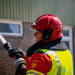 Daarna rijdt hij naar zijn bedrijf waar hij inmiddels een autospuit en een tankautospuit aantreft. Hij meldt zich bij de bevelvoerder.