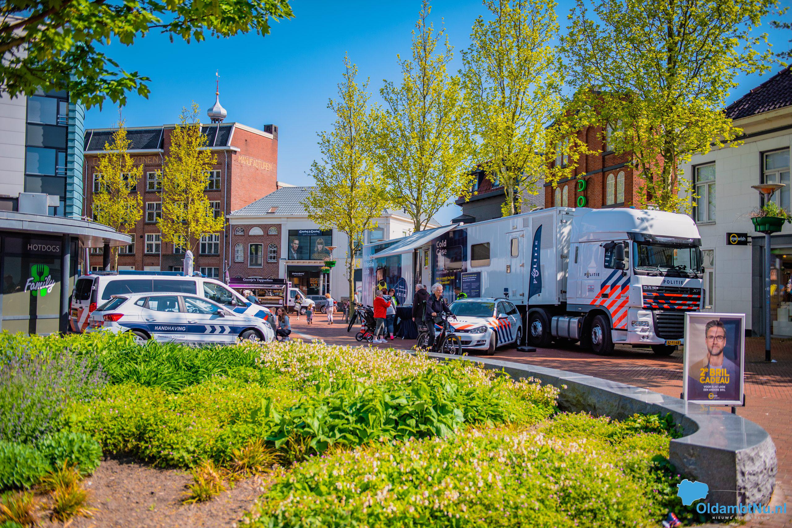 Winschoten – Met een grote vrachtwagen / bus manifesteerde de politie zich deze zaterdag 20 mei op het Israëlplein in hartje Winschoten. Een groot aantal agenten van het korps Oldambt waren deze dag aanwezig om vragen van burgers te beantwoorden en kinderen een kijkje laten nemen en de wereld van politie.
