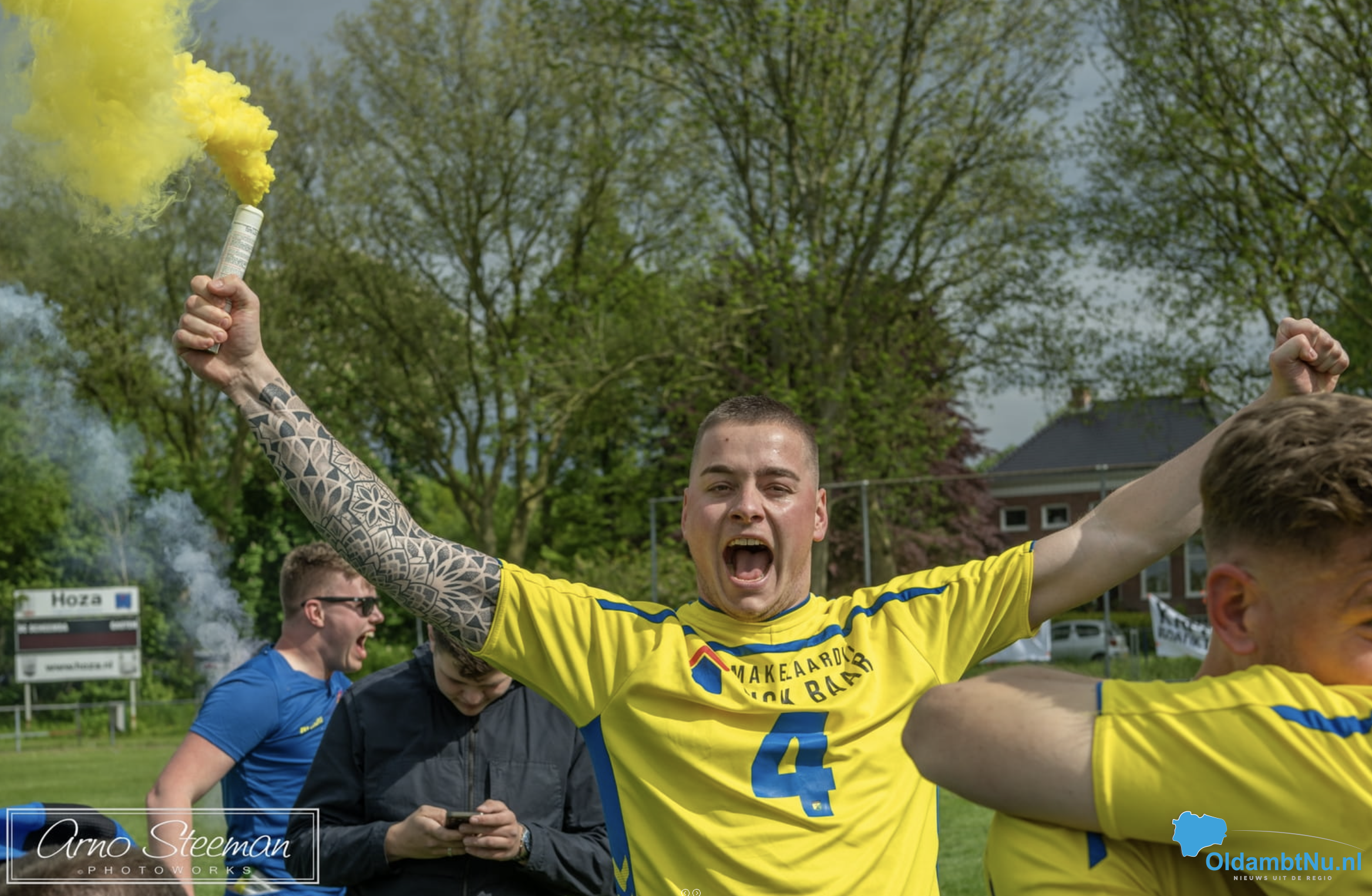 Scheemda – Met een eindstand van 3-0 tegen Meedhuizen is SC Scheemda afgelopen zaterdag kampioen geworden. Met deze overwinning maken ze promotie naar de 4e klasse. Zoals altijd was het publiek in grote getale naar sportpark d’Oosterd gekomen. Vuurwerk en fakkels zorgden voor een echte sfeer.